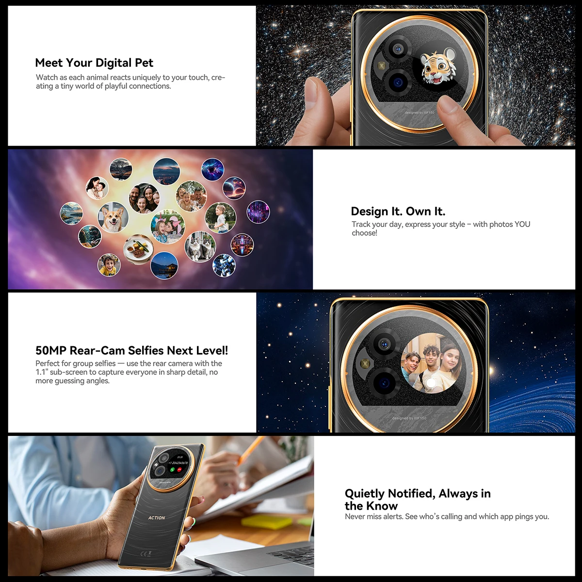 Action 15Pro’s celestial-inspired design transports the universe into your palm. The starry trail-patterned back cover shimmers like a galaxy in motion.