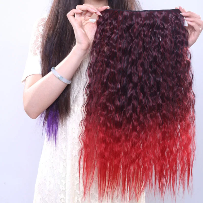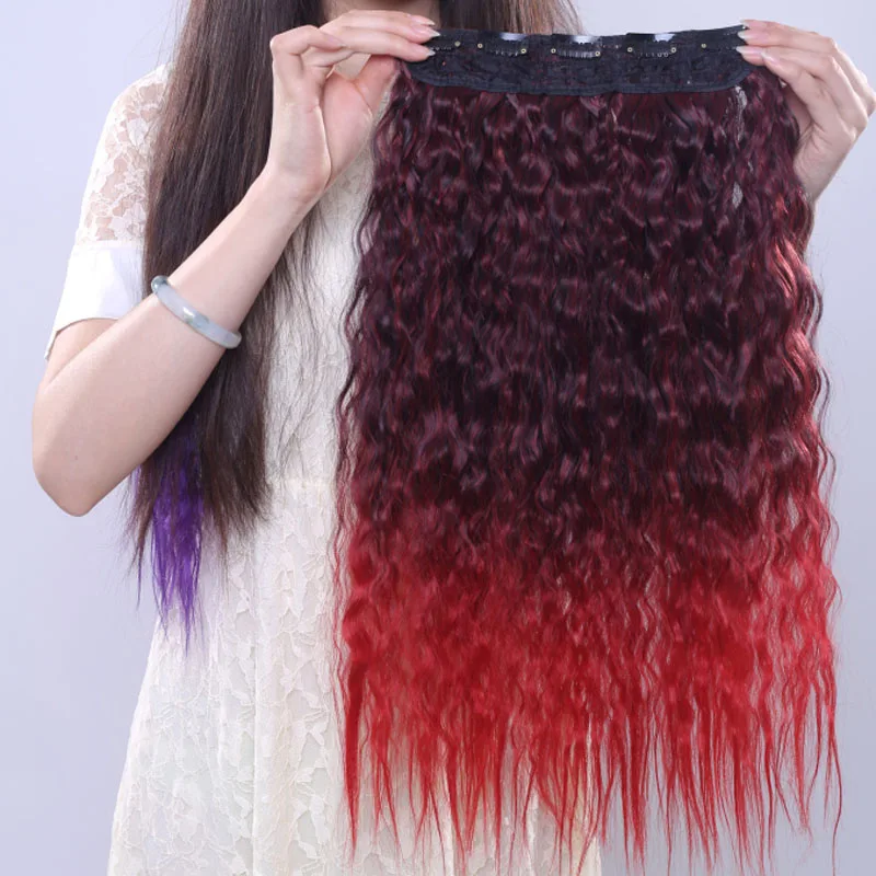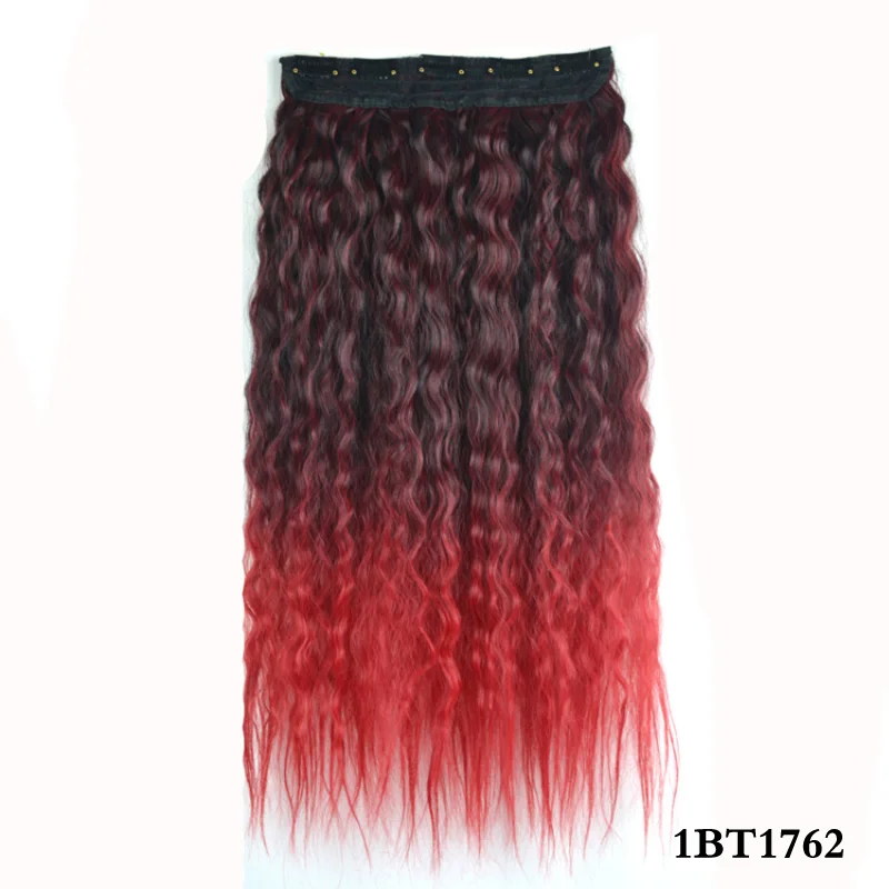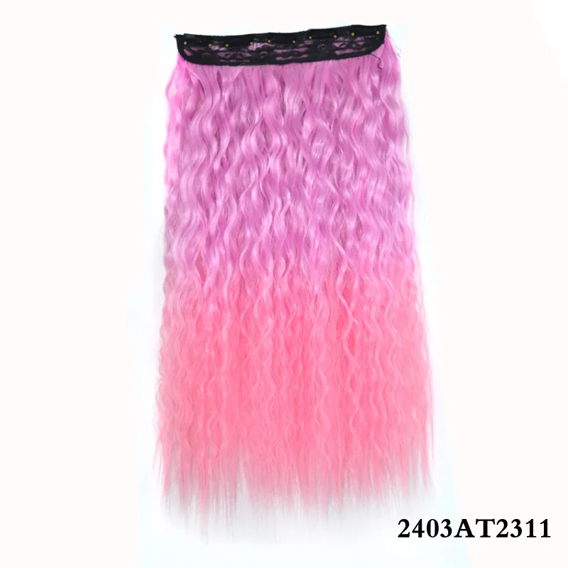 jeedou Kinky Curly Synthetic Hair Clip in Hair Extensions One Piece 5Clips 24″ 60cm 120g Purple Green Pink Gradient Omber Color