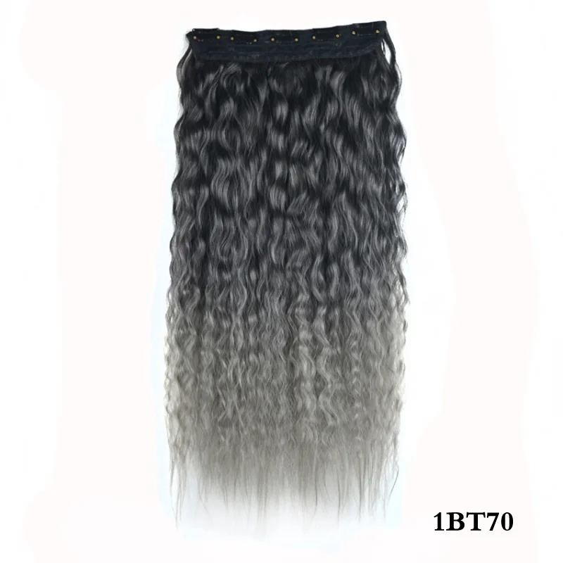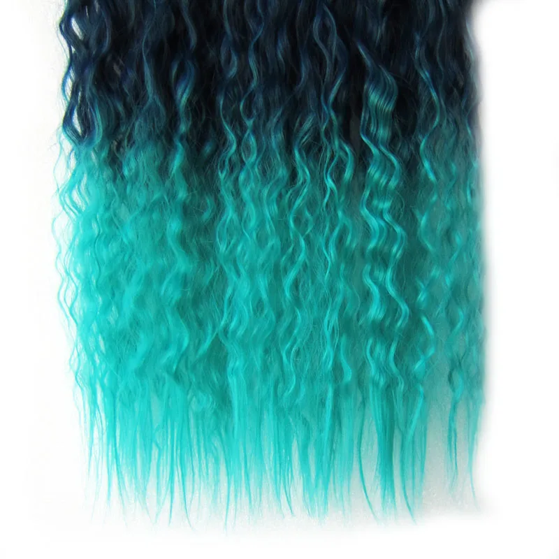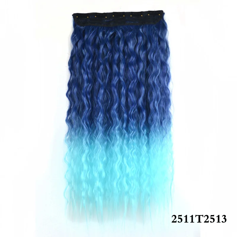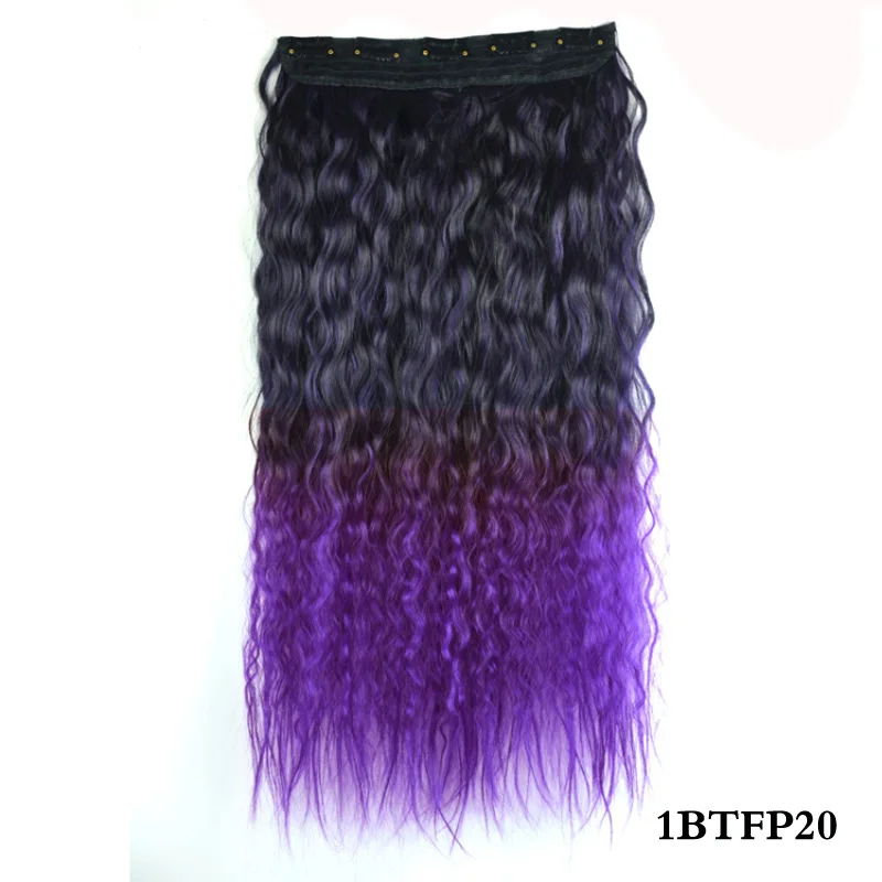 jeedou Kinky Curly Synthetic Hair Clip in Hair Extensions One Piece 5Clips 24″ 60cm 120g Purple Green Pink Gradient Omber Color