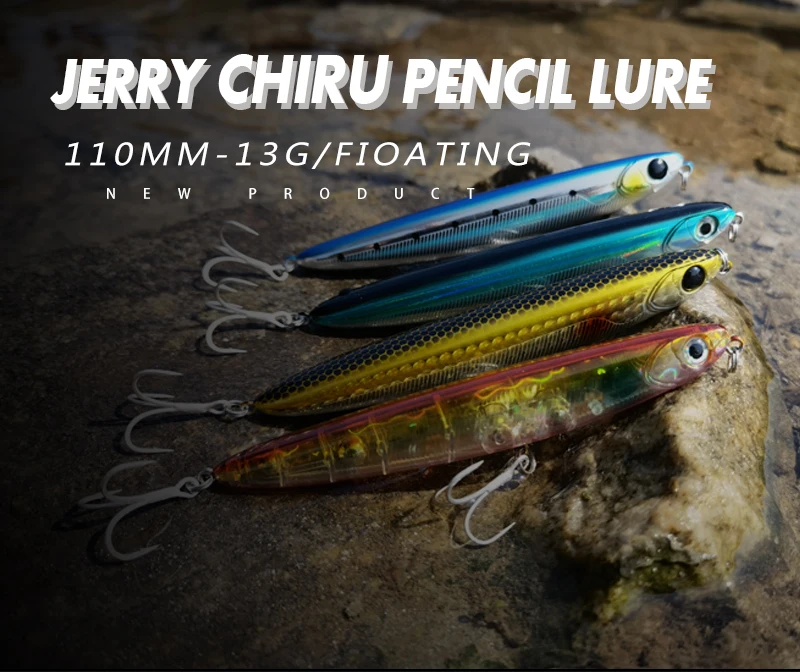 Jerry Surface Pencil Floating Lure 110mm/4,5in Topwater Stickbait Rattling Rock Spinning Fishing Hard Bait for Seabass Fishing