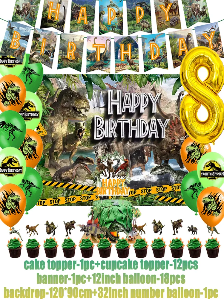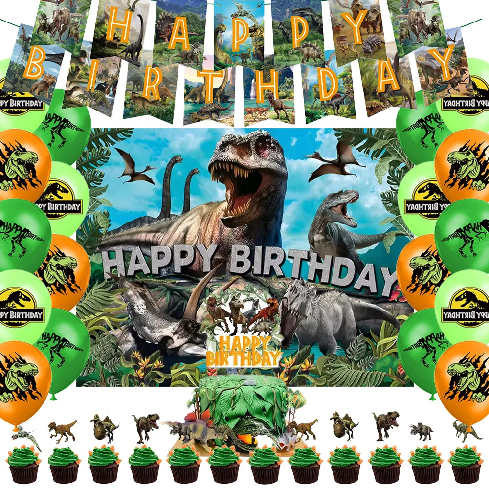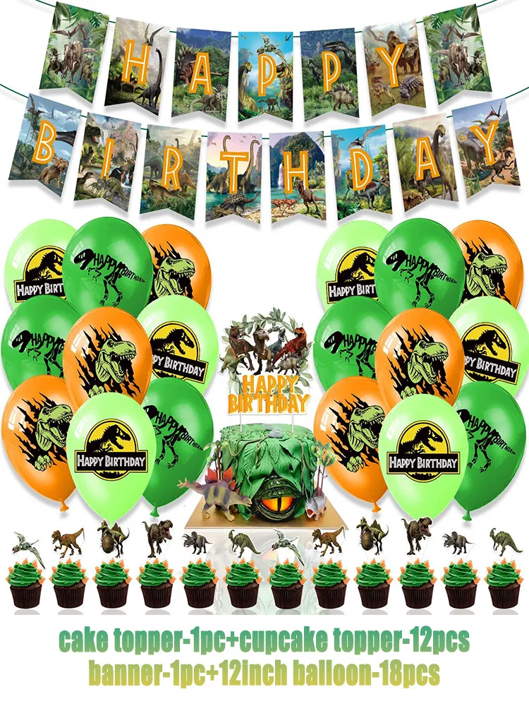 Jurassic Dinosaur Theme Birthday Party Supplies Decoration Dinosaur Balloon Banner Backdrops Cupcake Topper for Kids Child Gifts