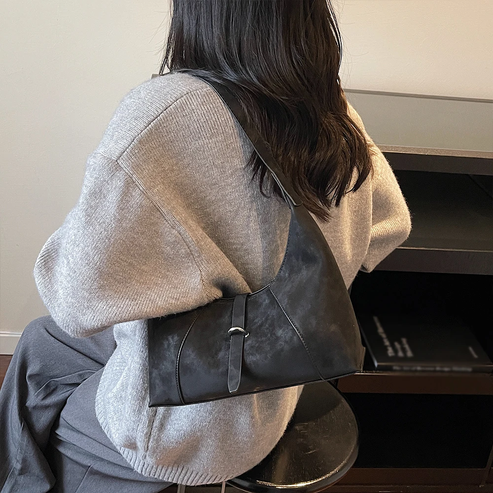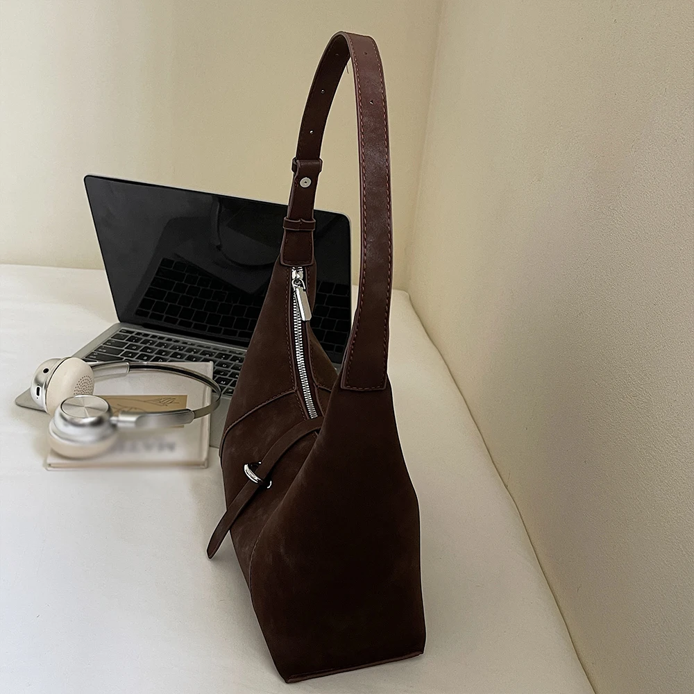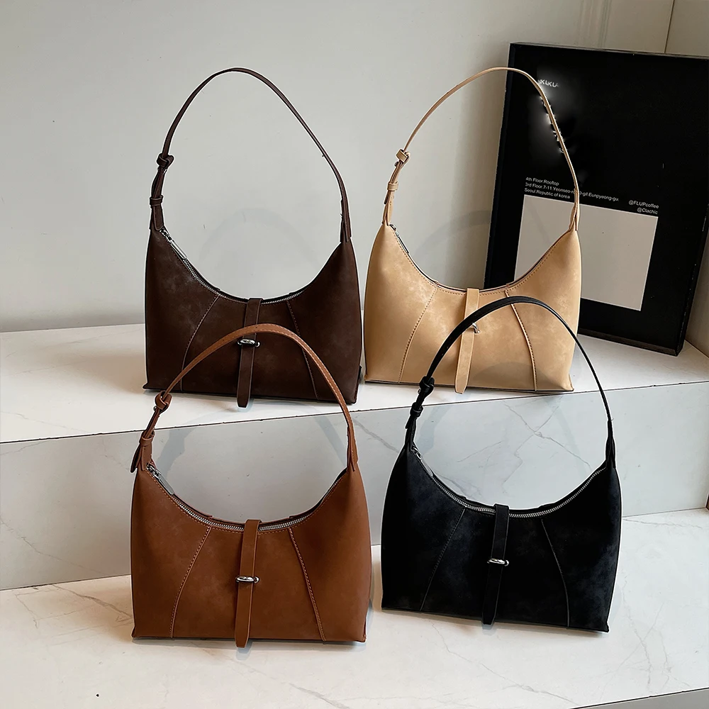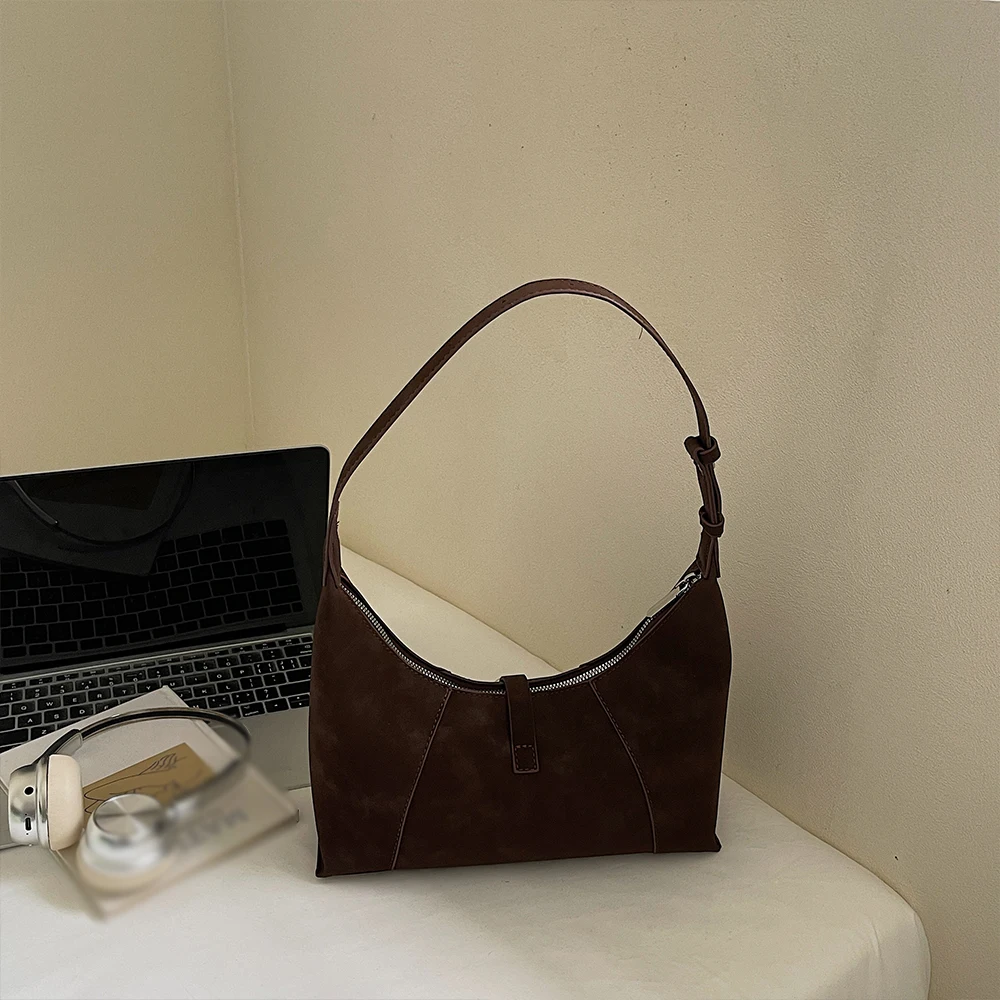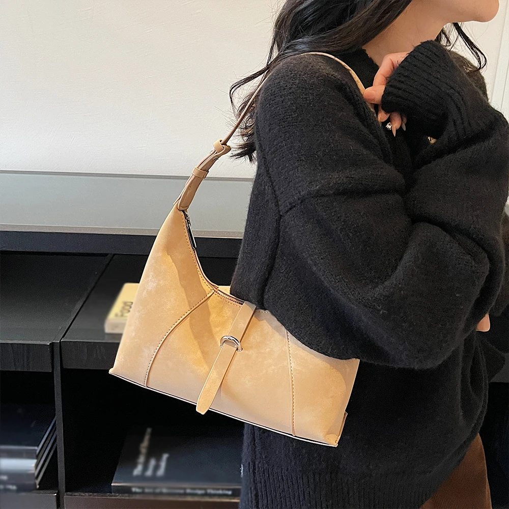 Light luxury and high-end frosted leather underarm bag, new trendy and versatile single shoulder crossbody bag