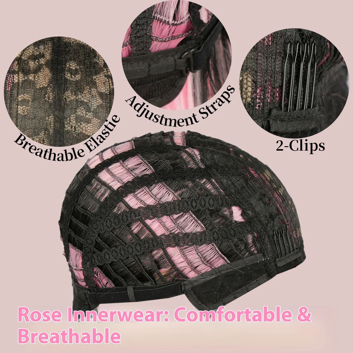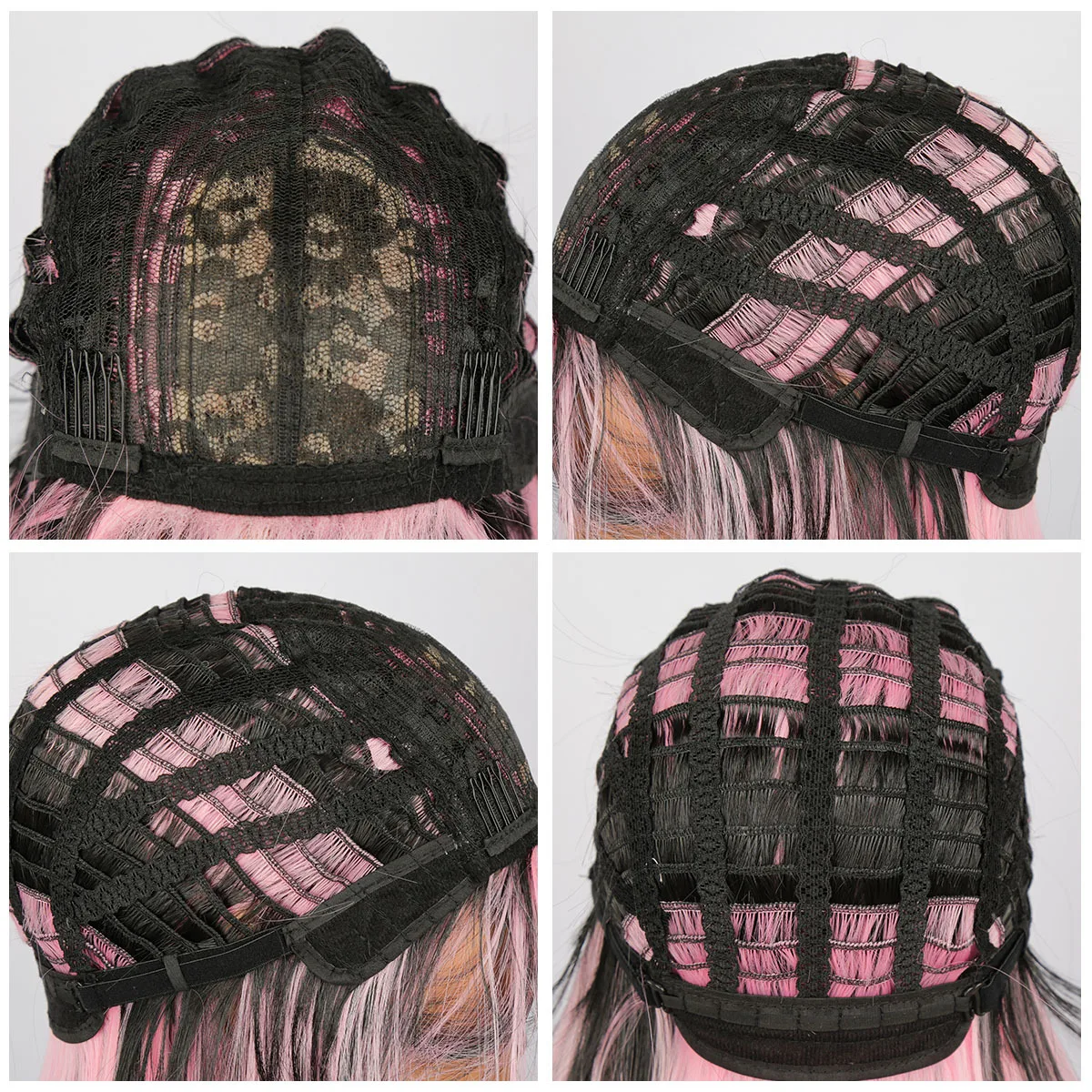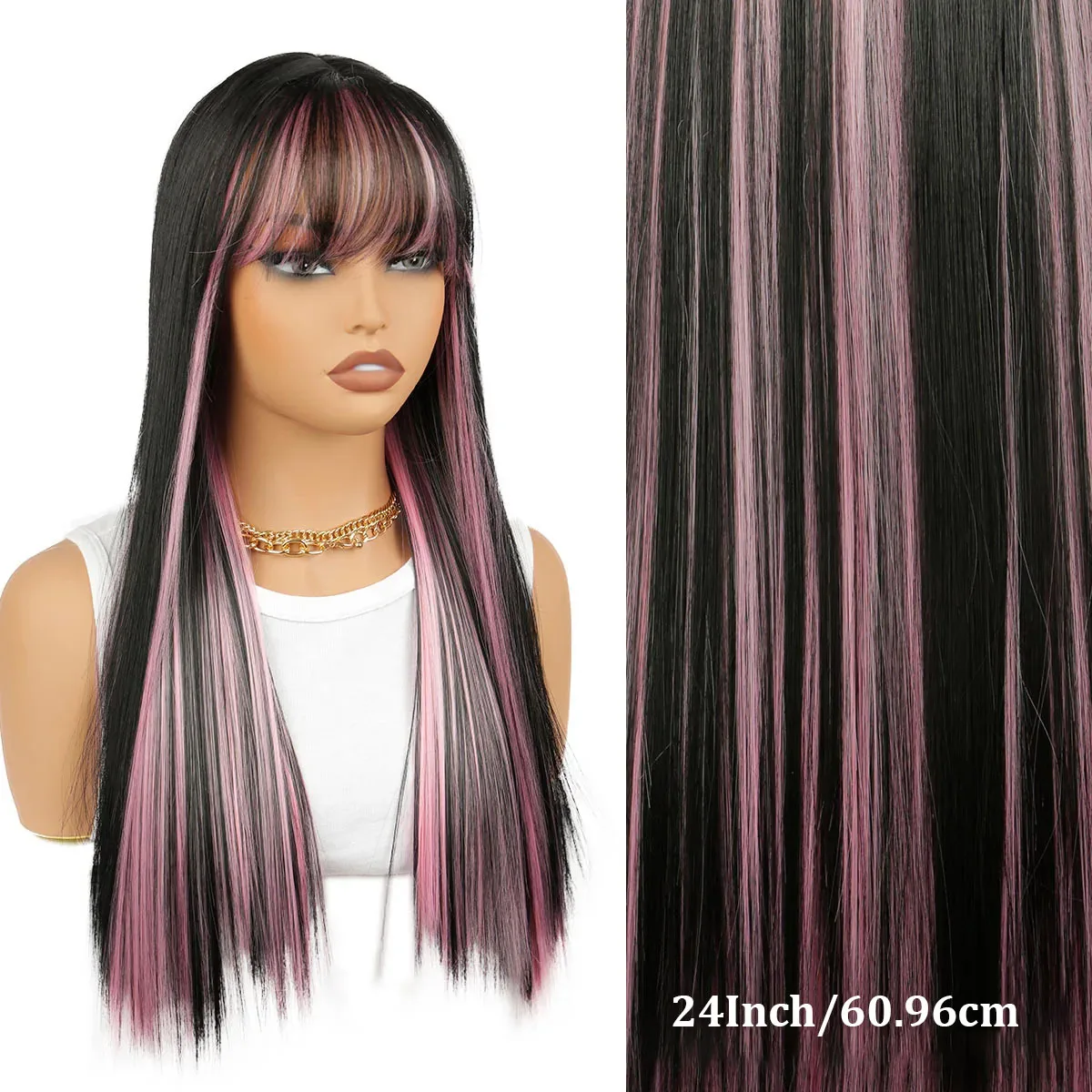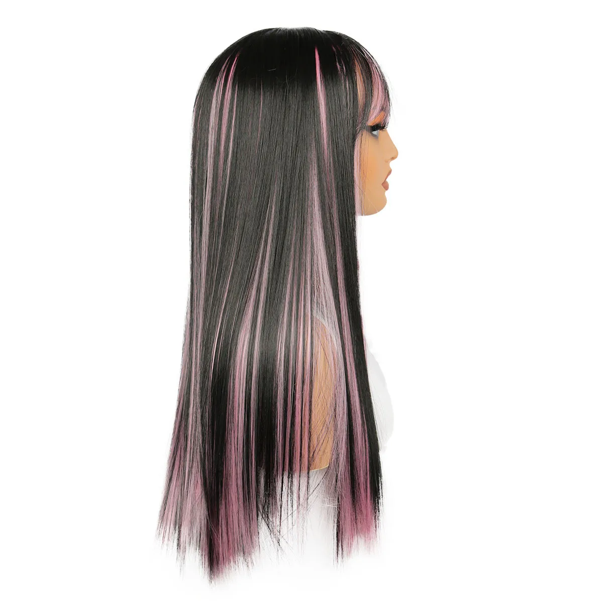 Straight Wigs With Bangs for Women Black and Pink Colored Hair Wig Synthetic 24 Inch Cosplay Party Holloween Daily Used