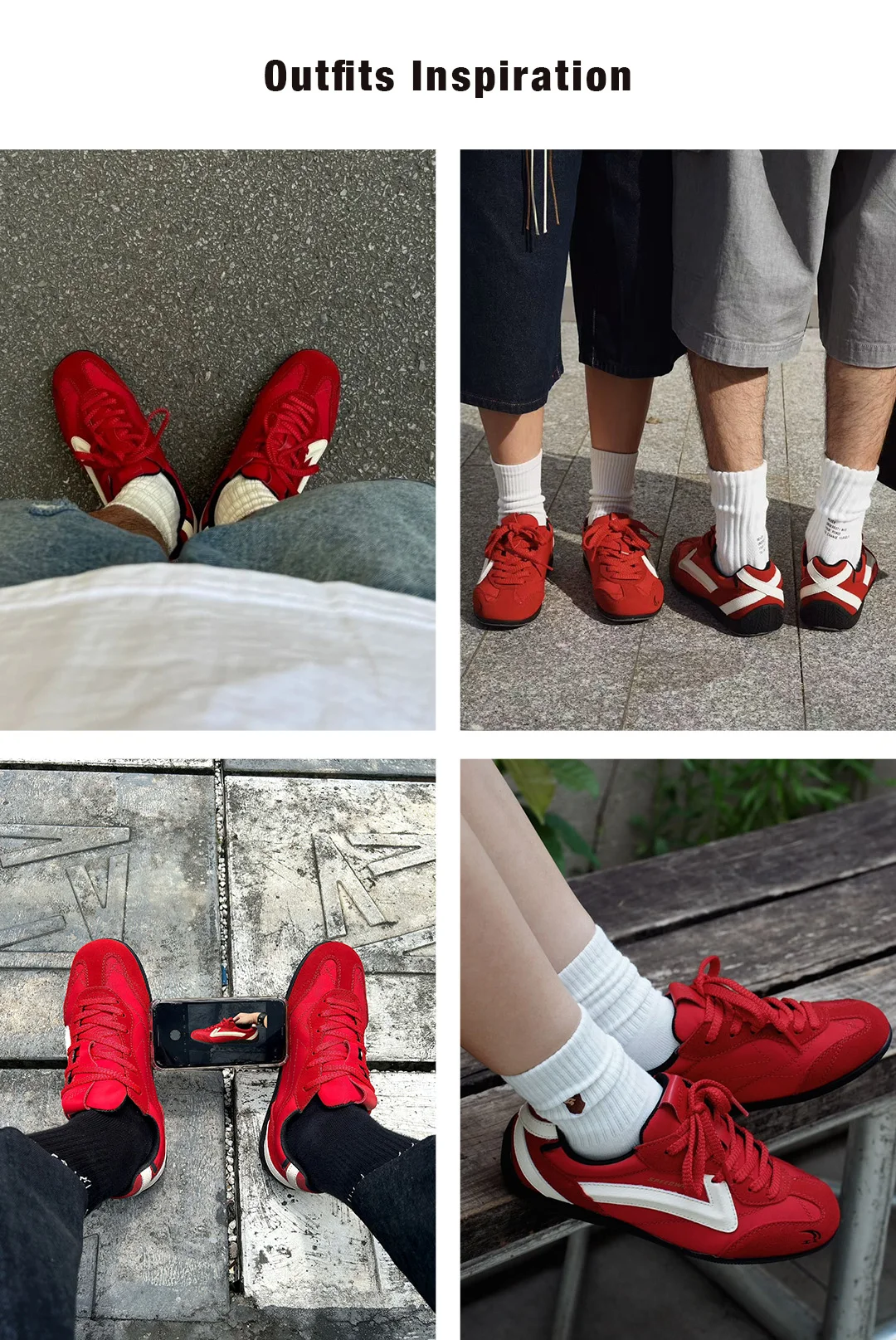 - Feature 8: Maden Vintage Patchwork Red Racing Sneakers Unisex Summer Breathable German Trainers Shoes Thin Sole Casual Lace-Up Sporty Shoes