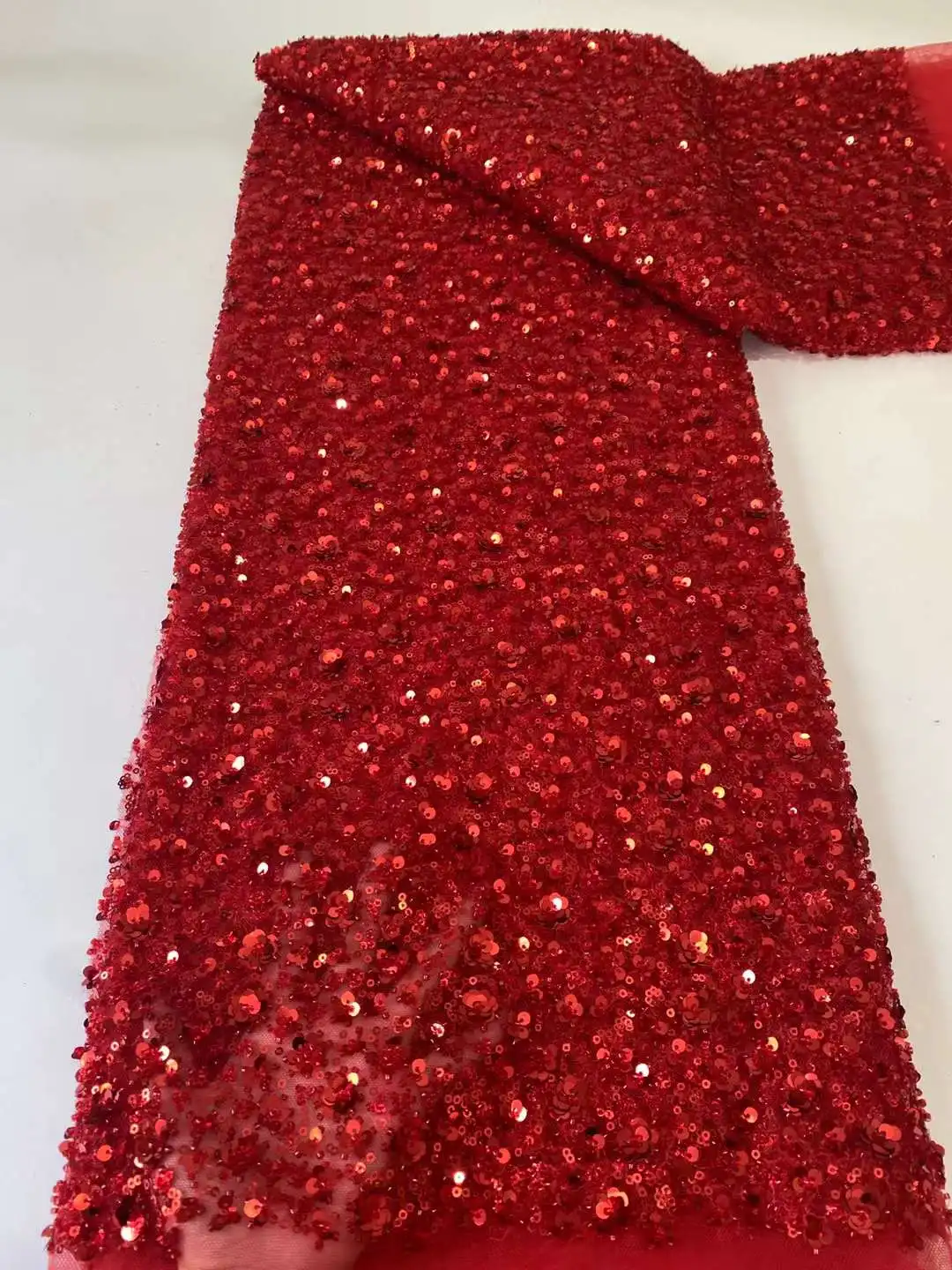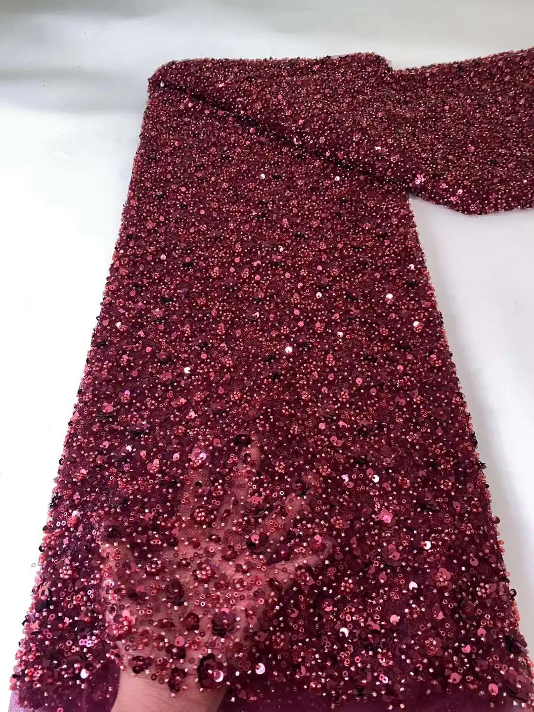 Madison-Latest African Lace Fabric, Luxury French Sequins, Mesh Lace Fabric, High-end Handmade Beaded for Wedding, 2023