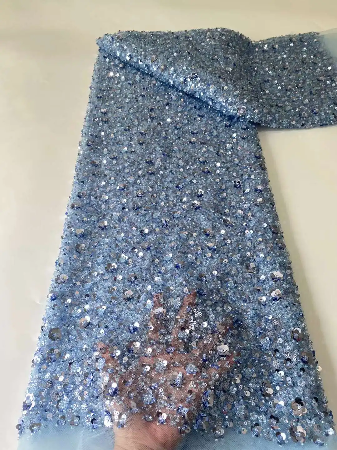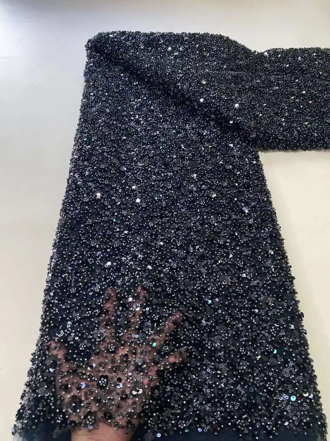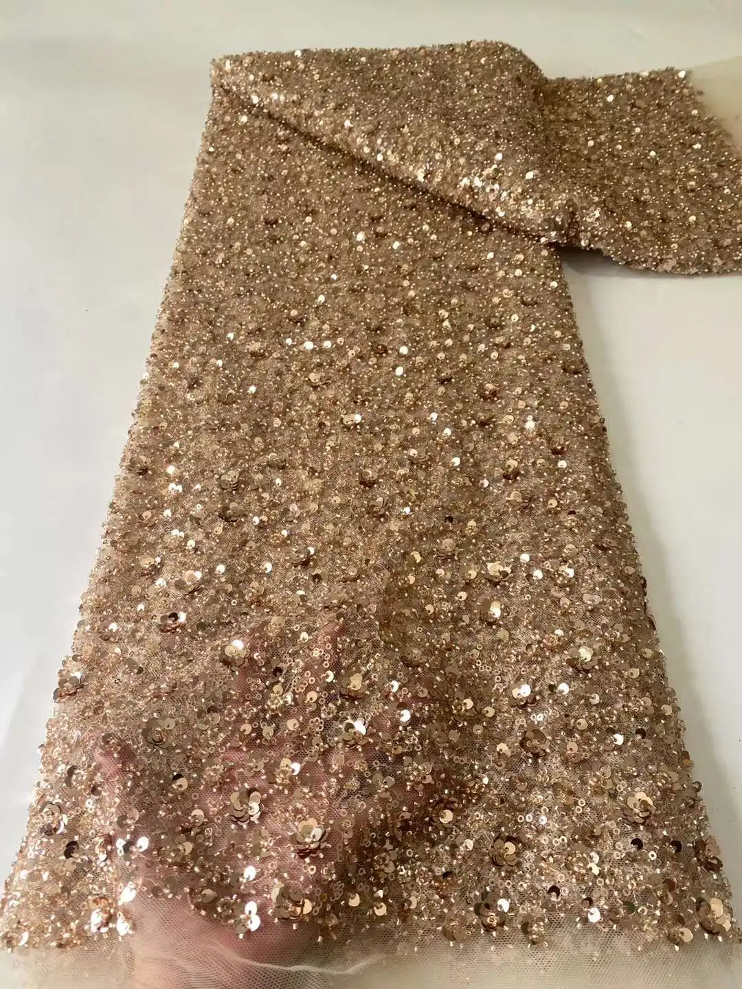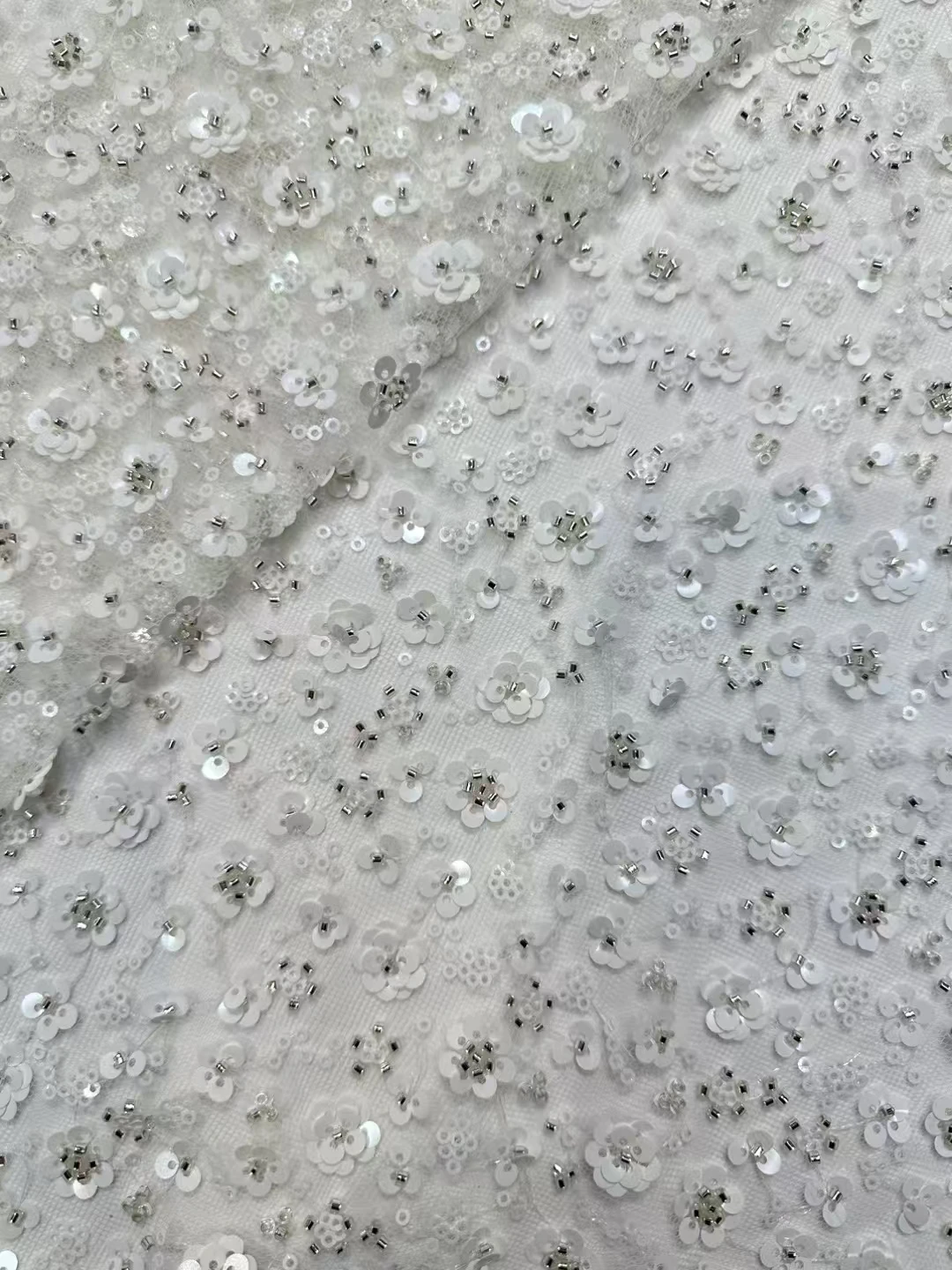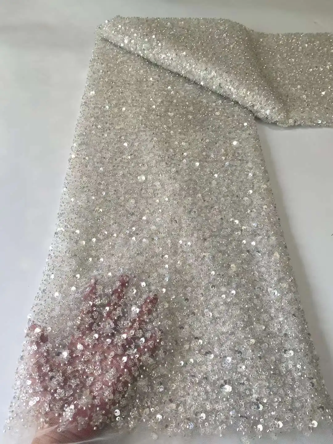 French Embroidery Mesh Lace Fabric 3D Beaded Lace Fabric New Arrival Sequin Lace Fabric 5 Yards For Wedding Dres