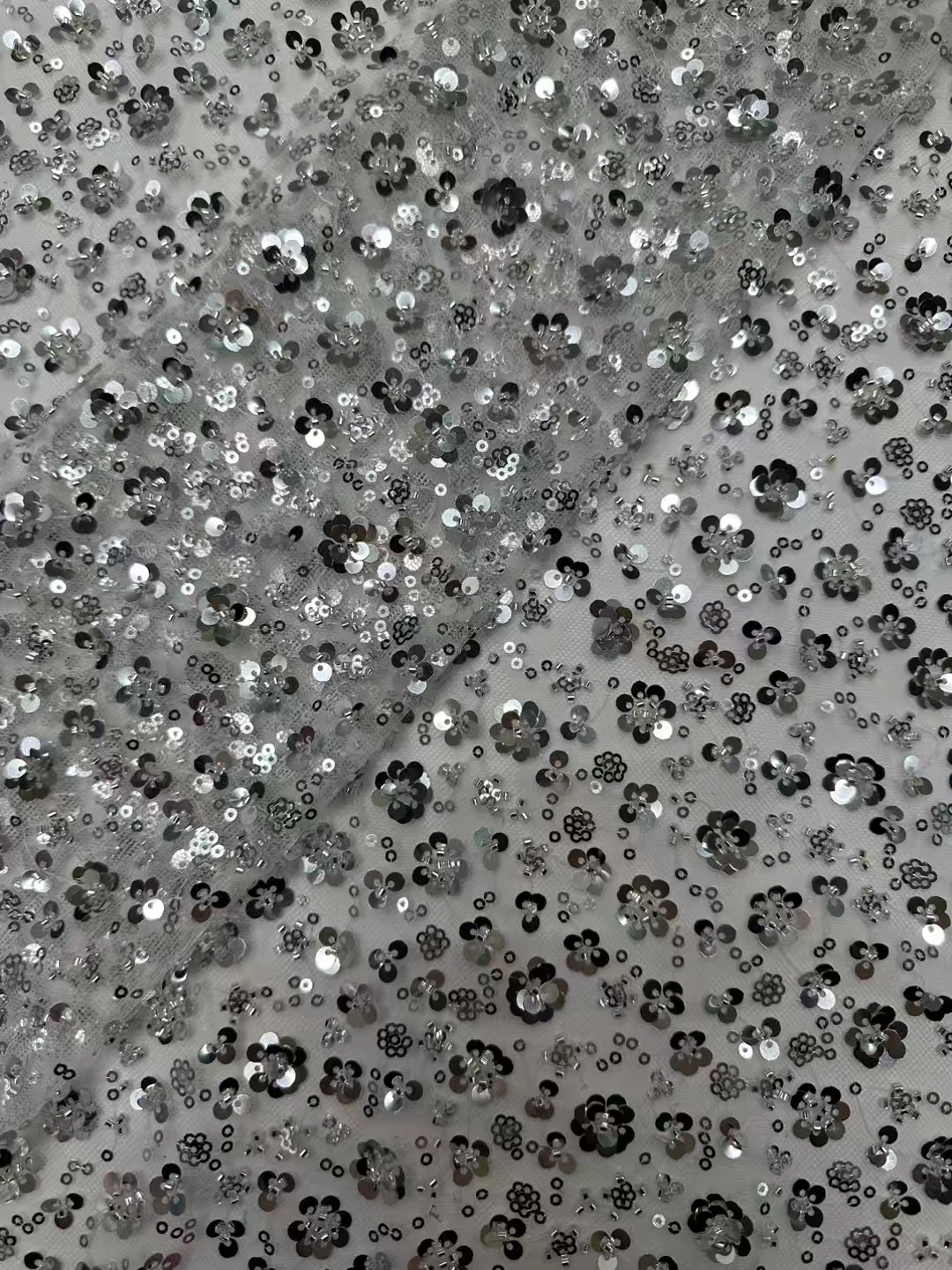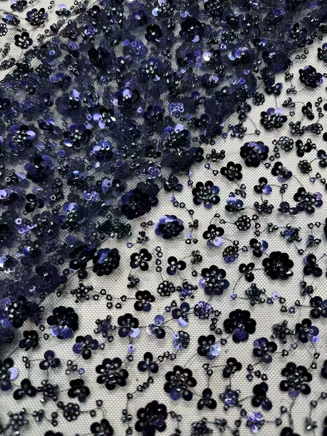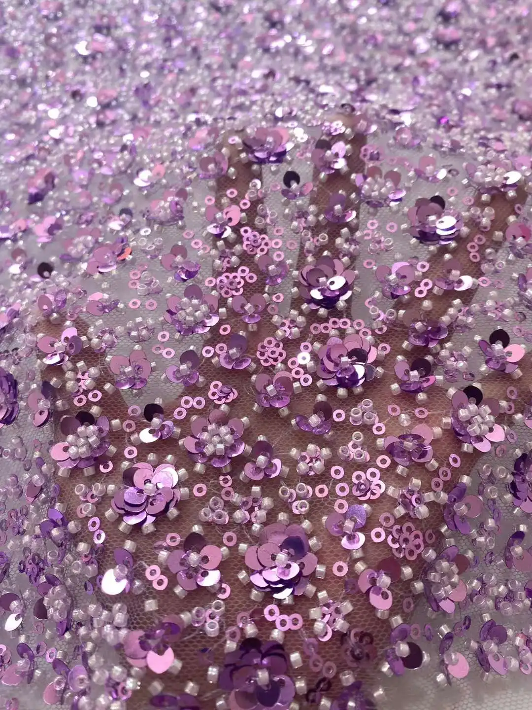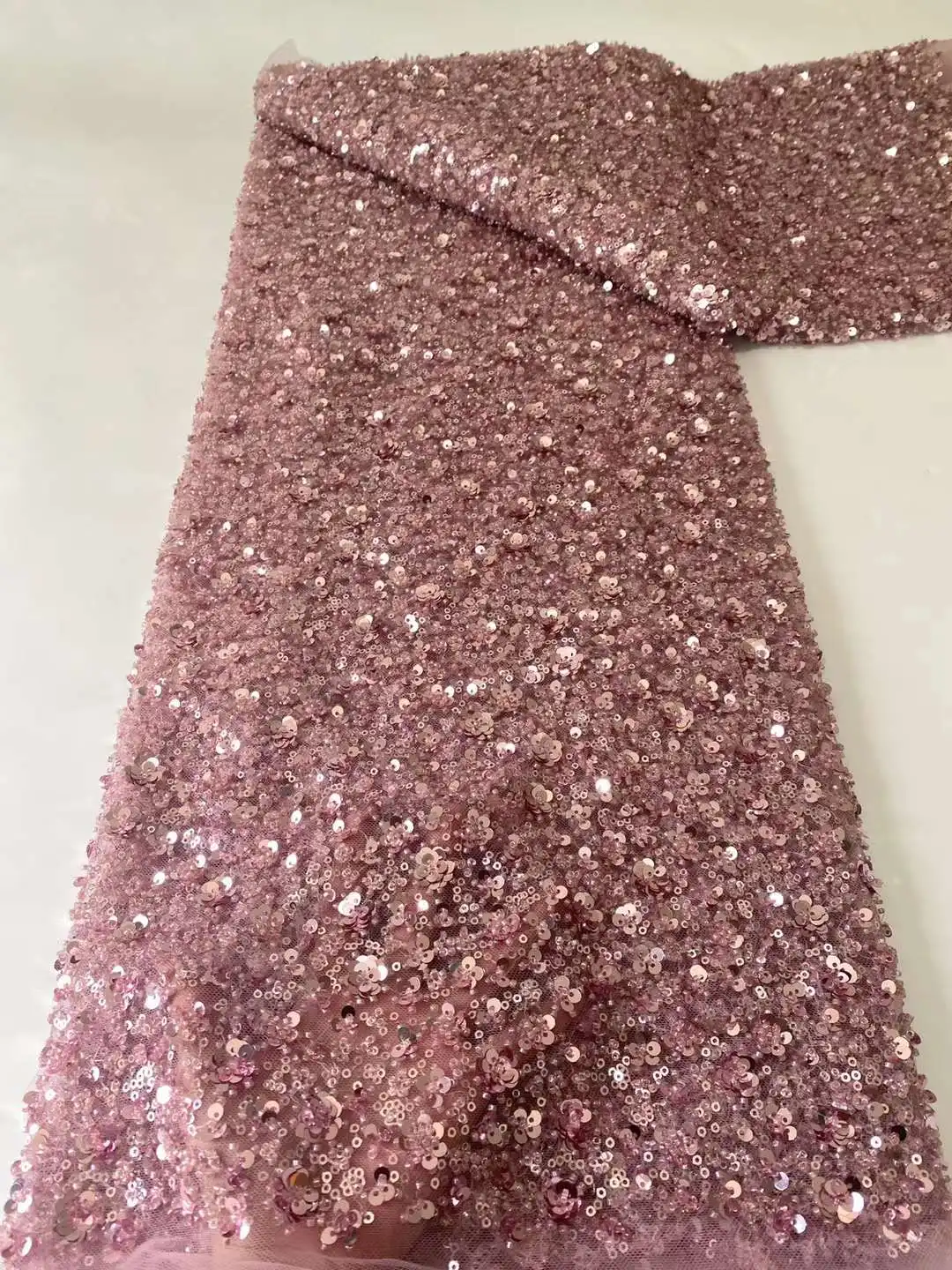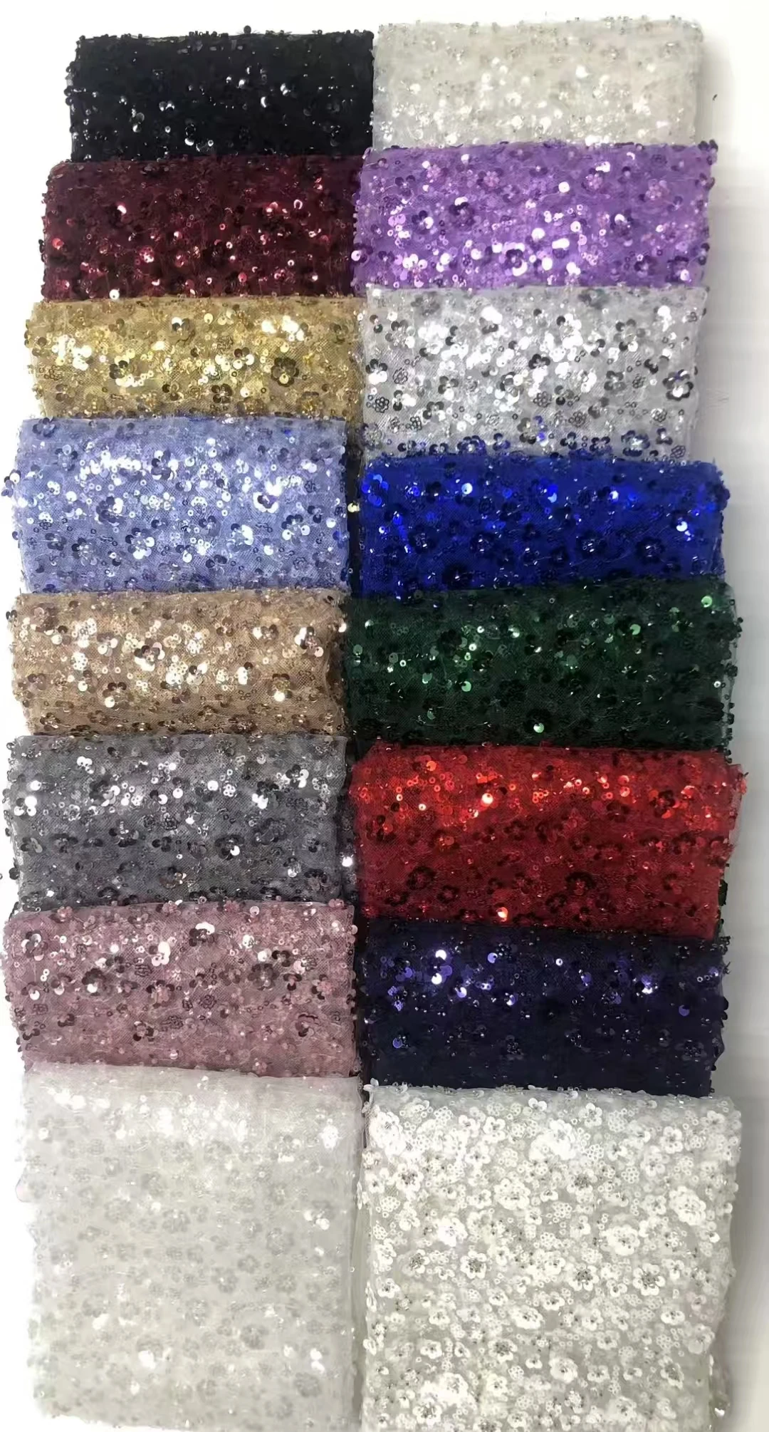 French Embroidery Mesh Lace Fabric 3D Beaded Lace Fabric New Arrival Sequin Lace Fabric 5 Yards For Wedding Dres