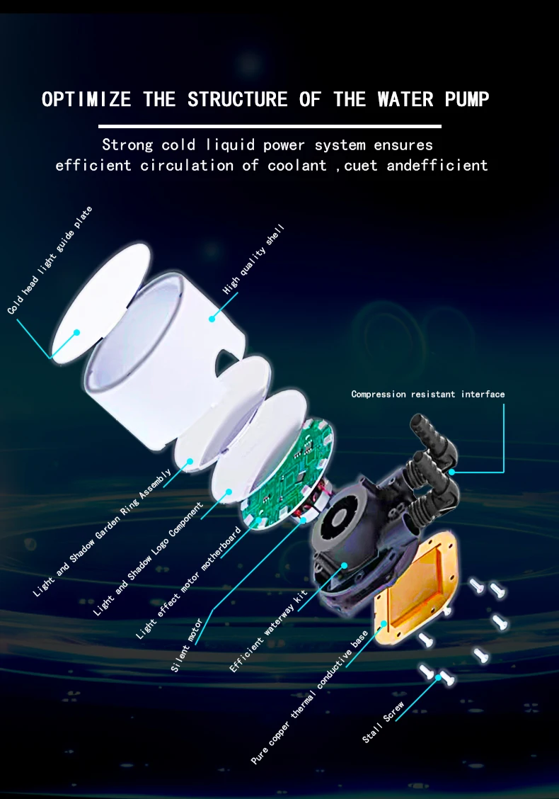 - Pump Interface: 4PIN,5v-3pin ARGB,12v-4PIN ARGB