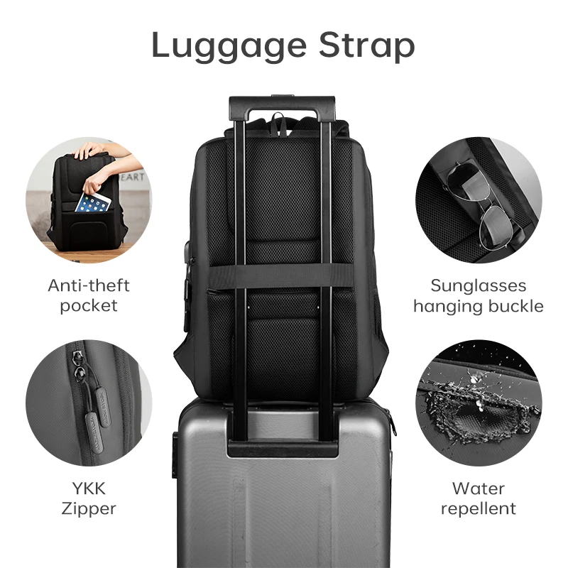 The Fady – MR9103SJ Expandable Lightweigh Backpack is made of water-resistant Oxford cloth. It fits a 15.6-inch laptop, and has a 2nd Gen USB charging port, YKK zippers, honeycomb back padding, and an anti-theft pocket. Extras include a trolley strap, headphone port, and glasses holder.