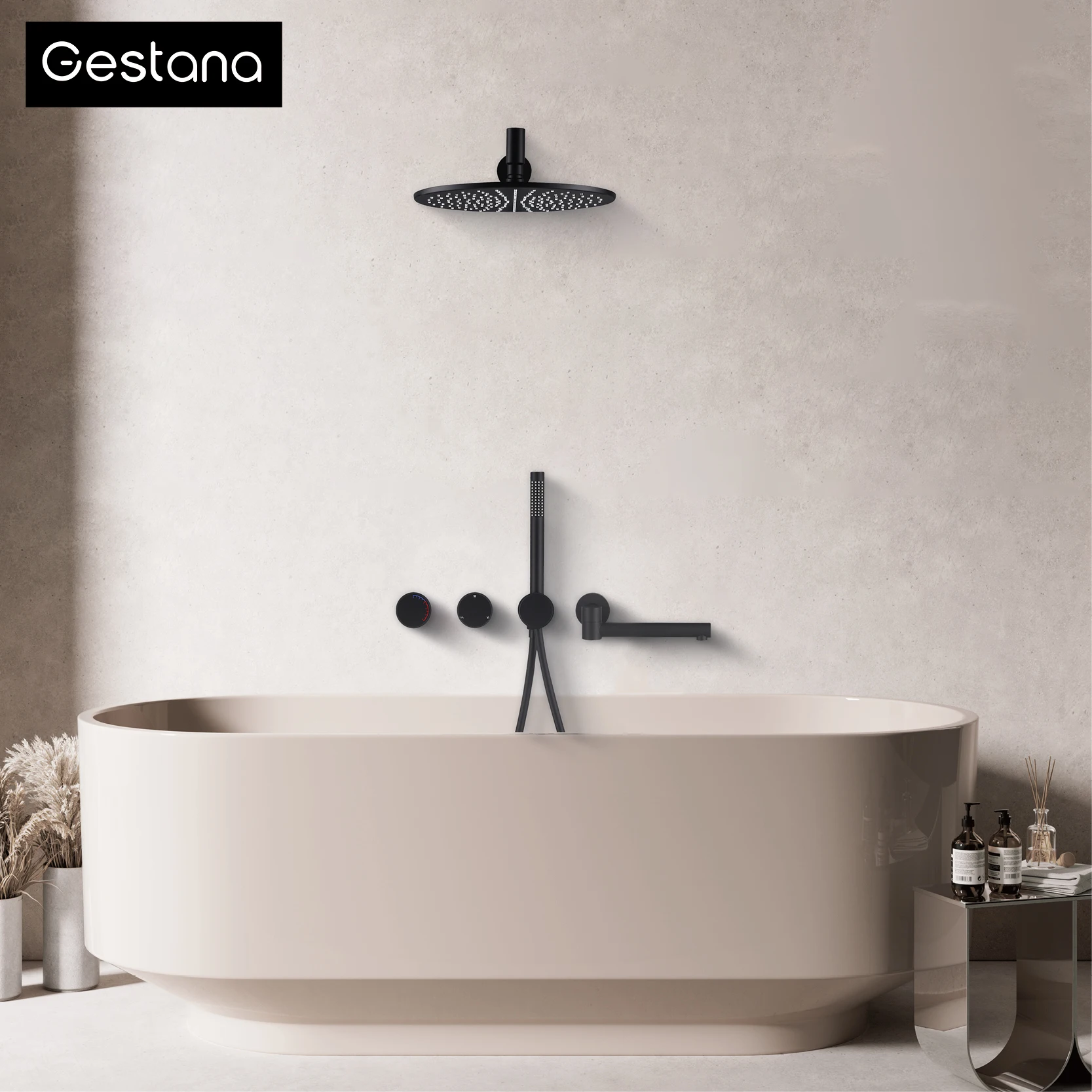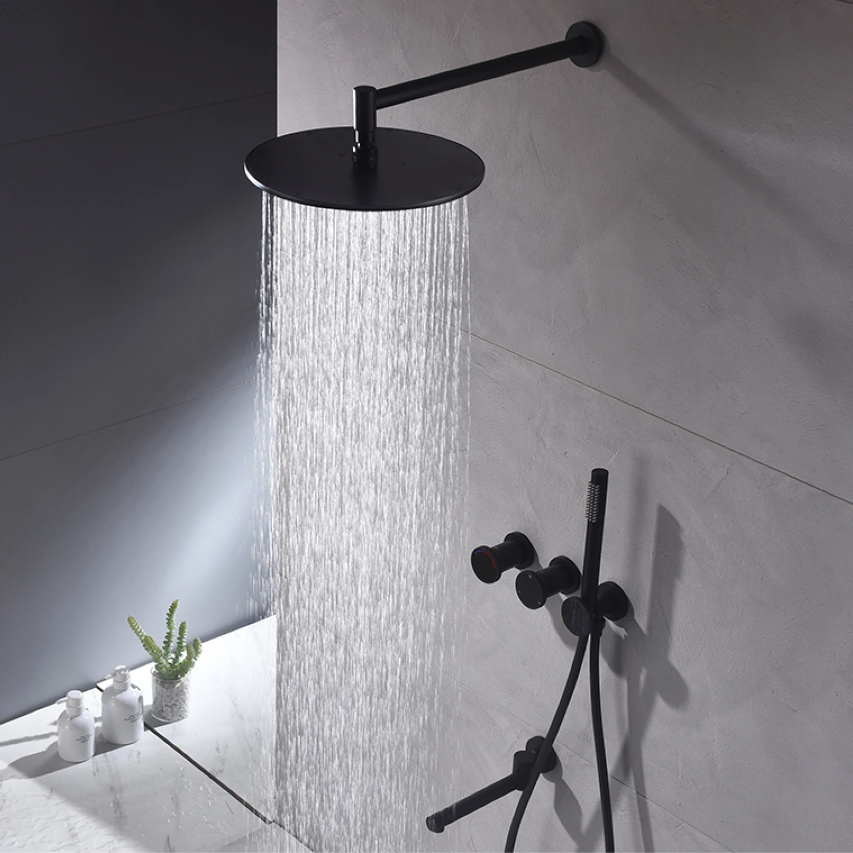 Be the first to review “Matte Black Brass Wall Mounted Rainfall Shower System 3-Function Minimalist Style Hot Cold Water Bathroom Bathtub Faucet”