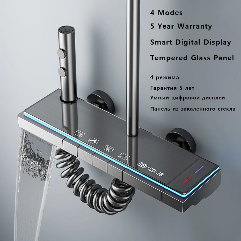 You're viewing: Matte Gray Rainfall Shower System Set Digital Display Smart Bathroom Faucet Bathtub Hot Cold Waterfall Mixer Tap Shower Full Set272.92$–280.68$Price range: 272.92$ through 280.68$