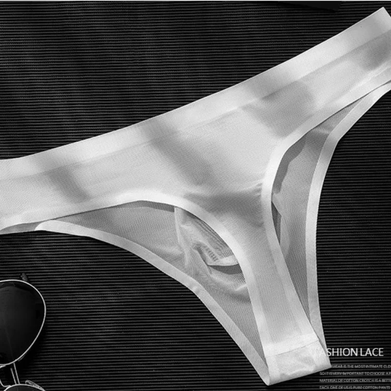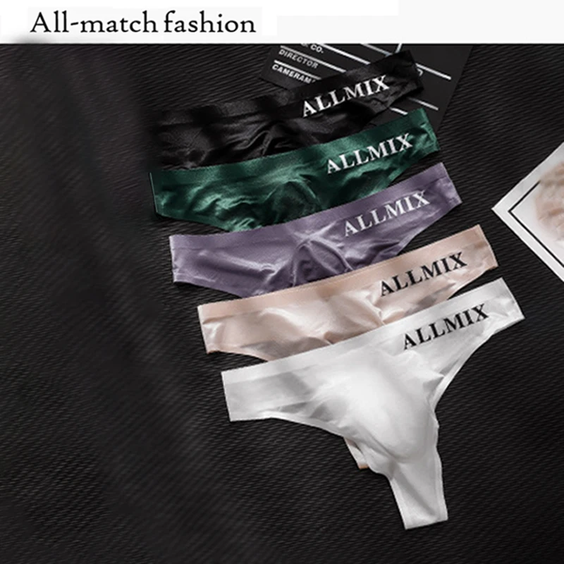 Men Underpants Sexy Transparent Briefs Sports Fitness Letter Thin Hip Panties G-Strings Ice Silk Low Waist, Seamless Thongs