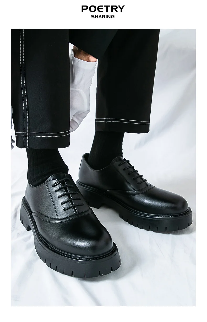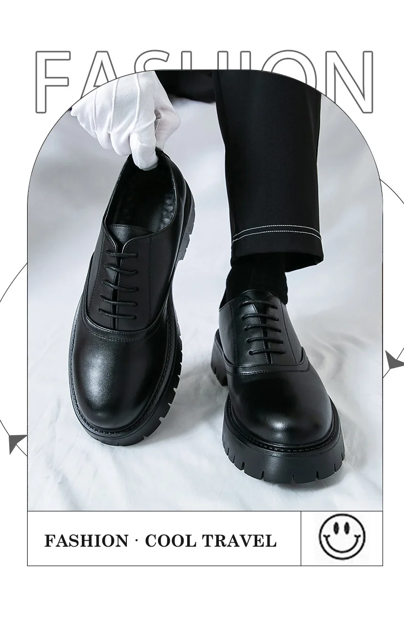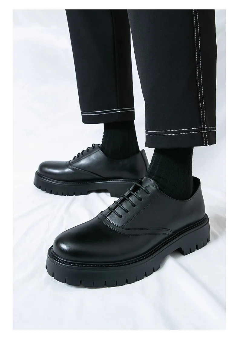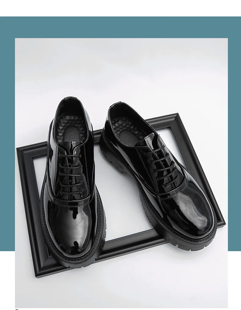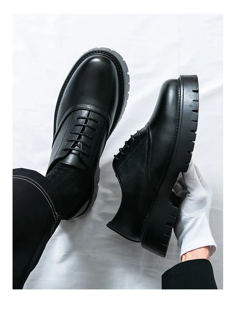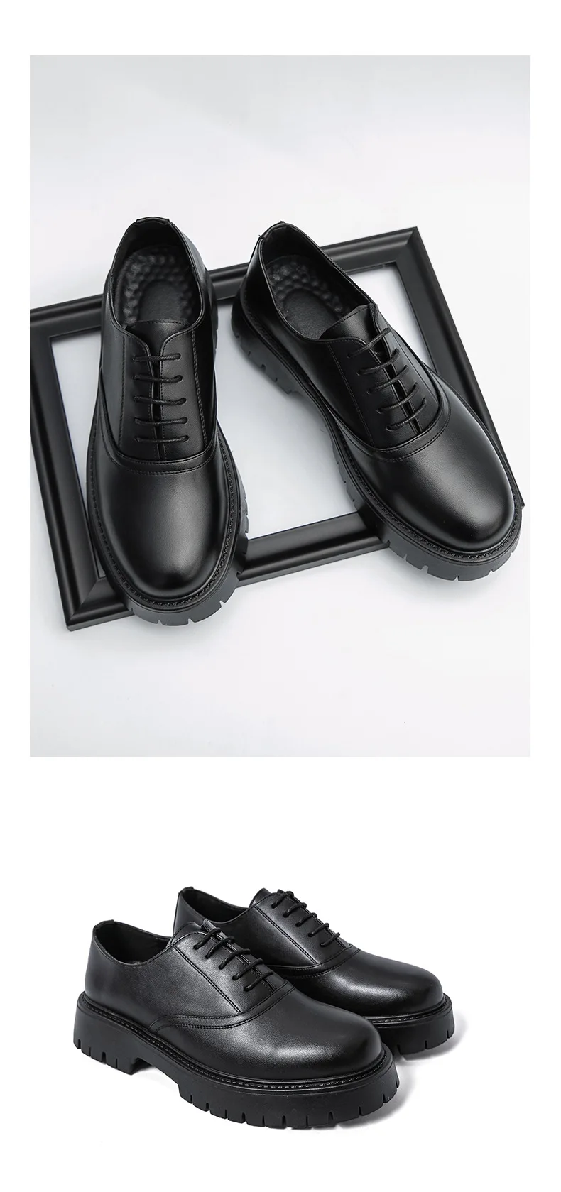 Men’s leather shoes, British thick-soled height-increasing color-blocking loafers, casual dress shoes