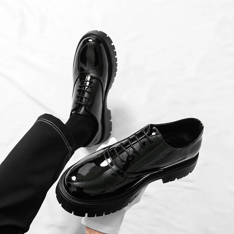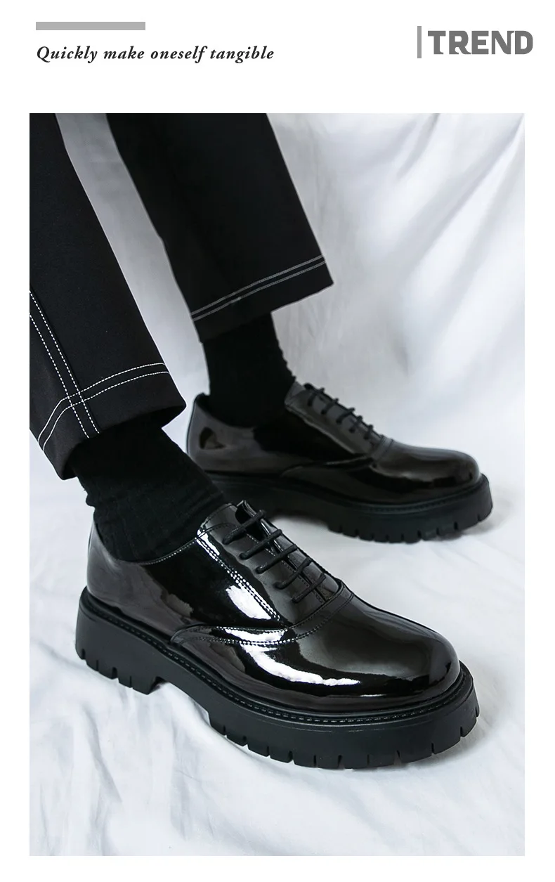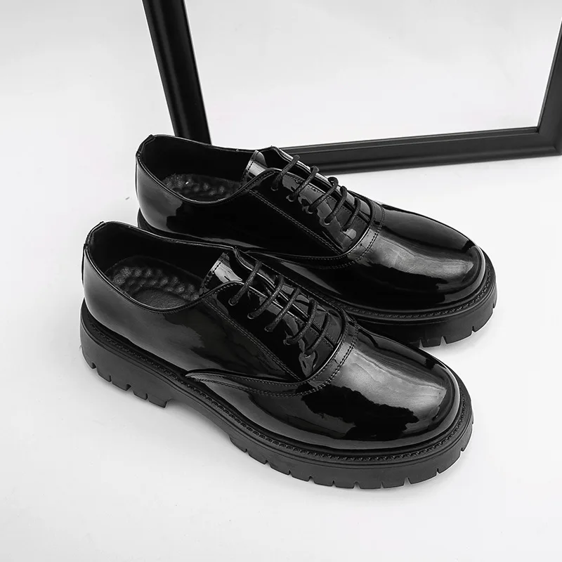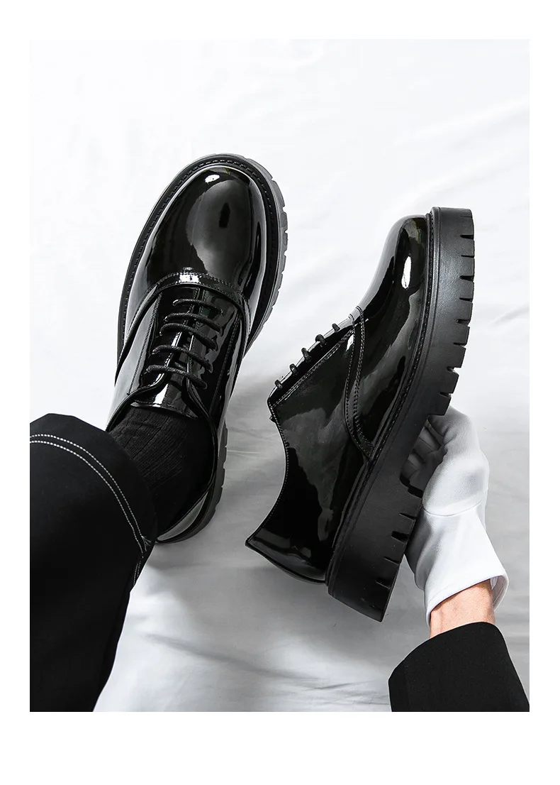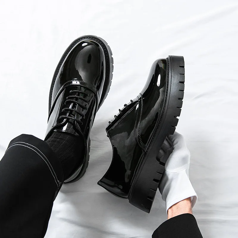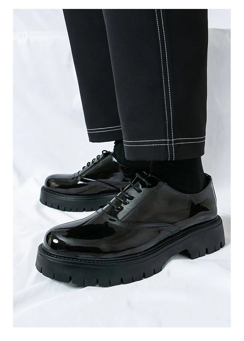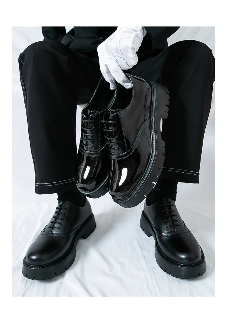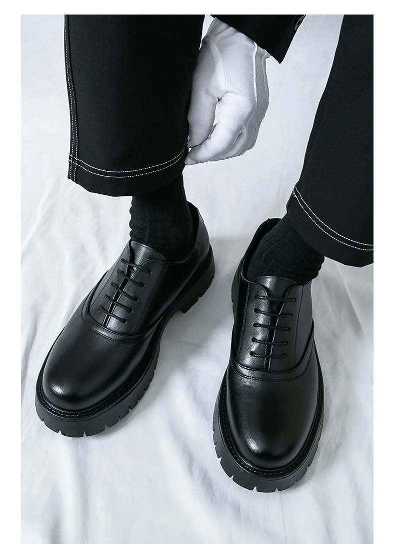 Men’s leather shoes, British thick-soled height-increasing color-blocking loafers, casual dress shoes