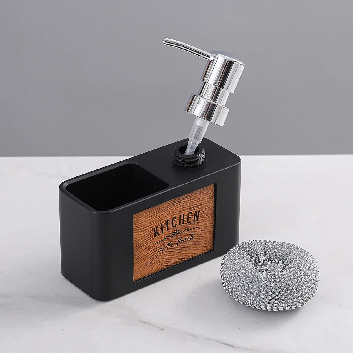 Combination of functions: both hand sanitizer pressure pump function and shelf, can be placed on steel wire ball and other cleaning supplies.