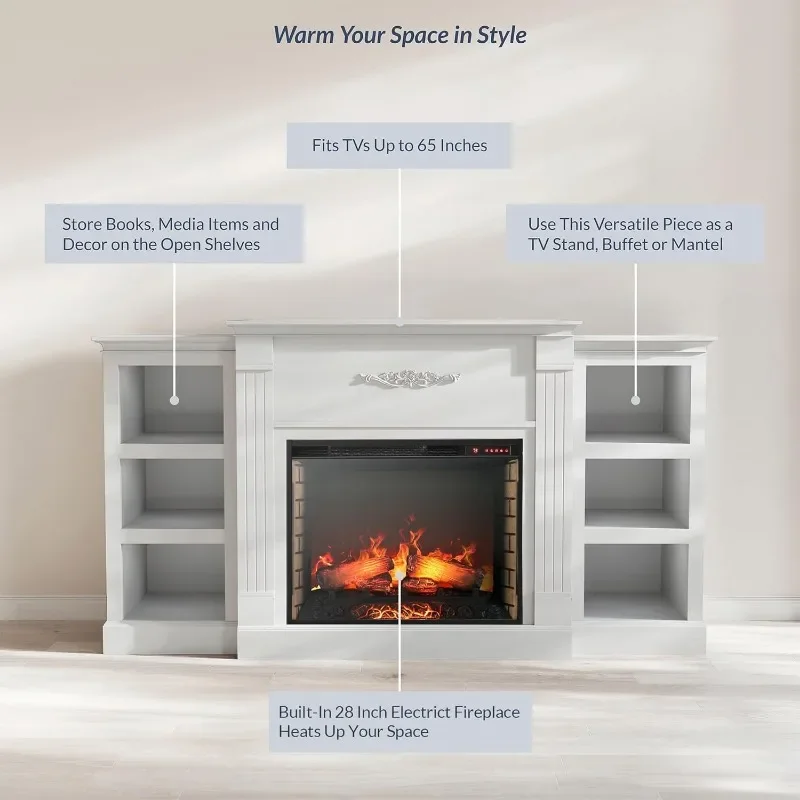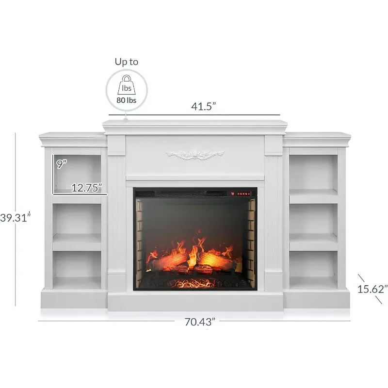 Modern 70″ Electric Fireplace Heater Mantel TV Stand & Media Entertainment Center for TVs up to 68″ with Energy-Efficient Heater