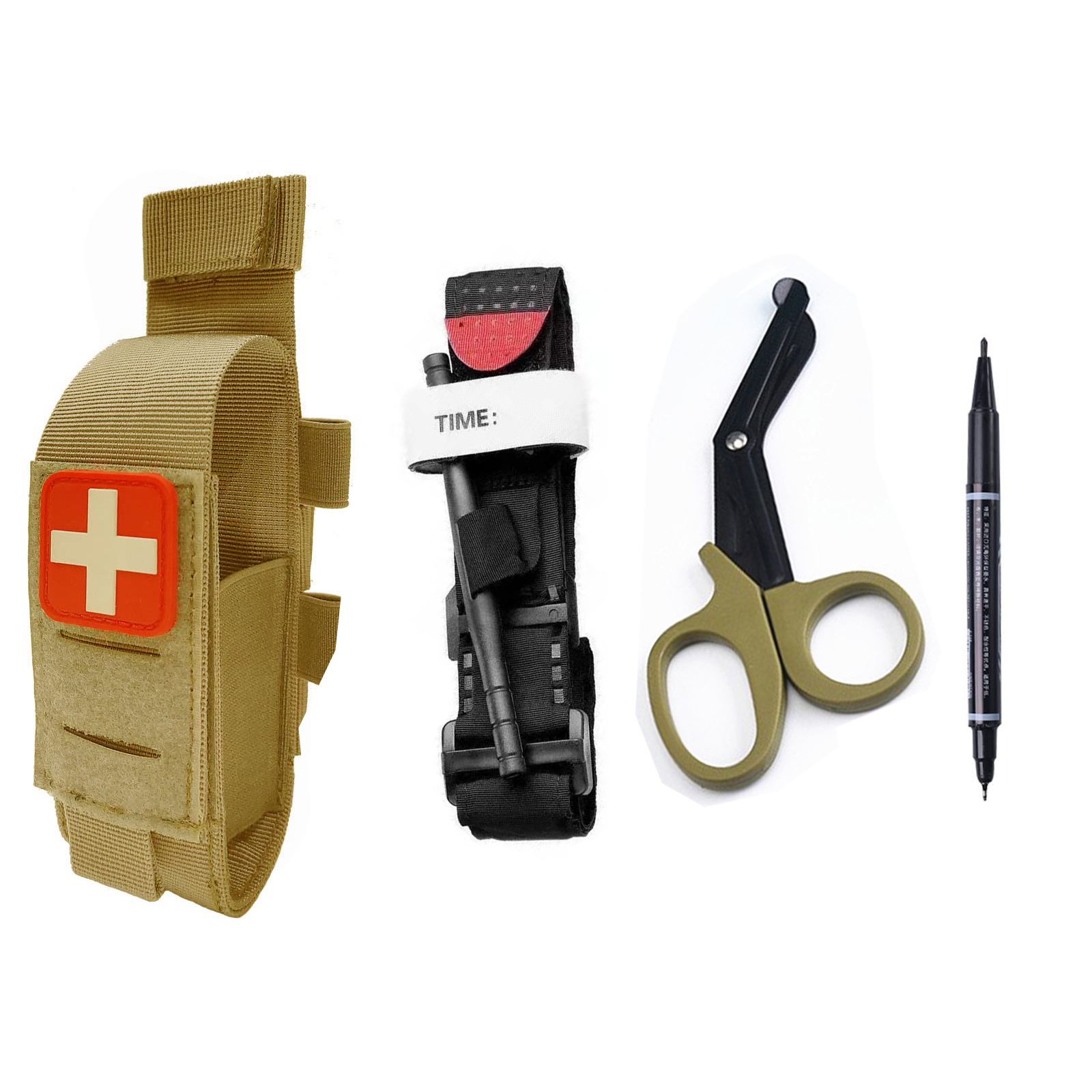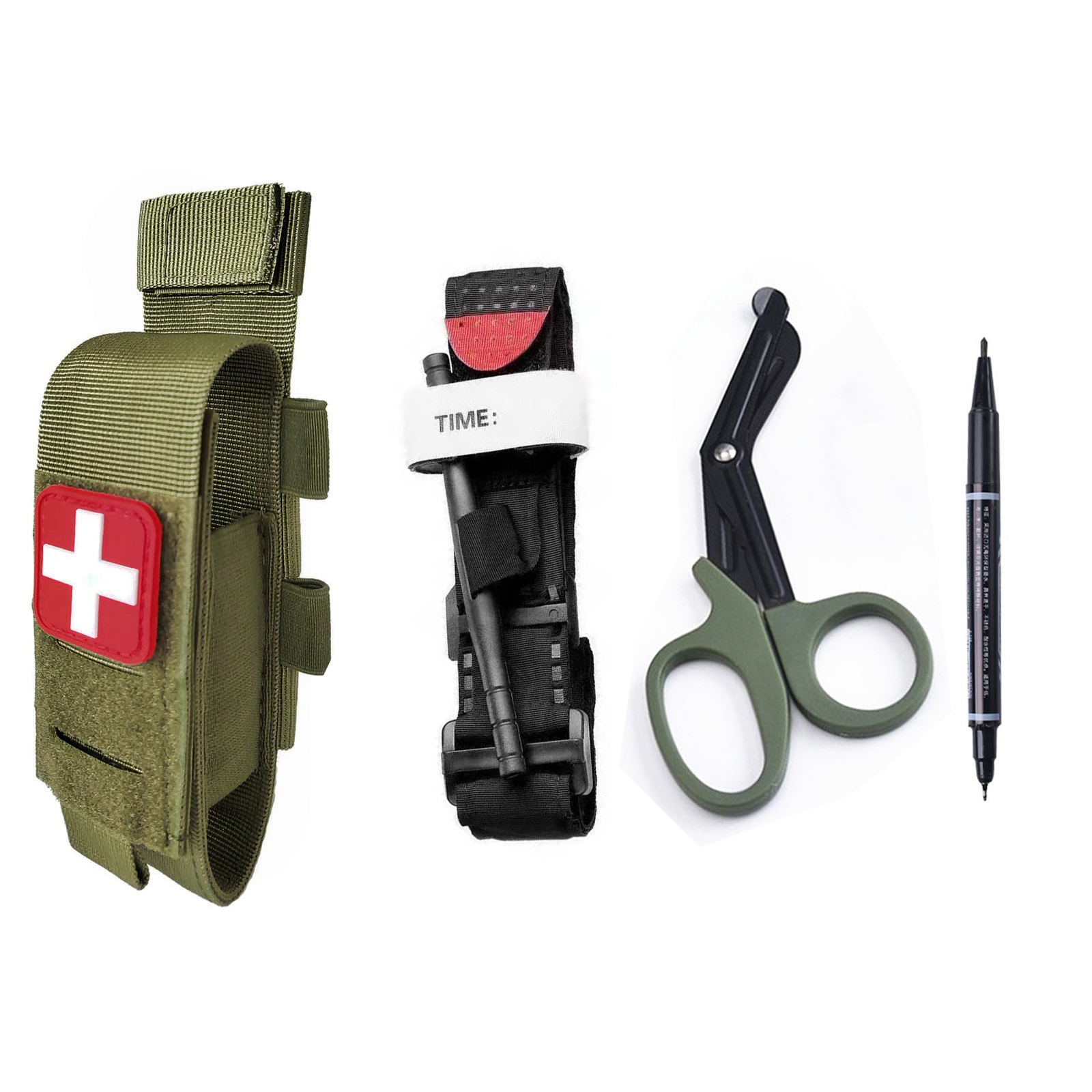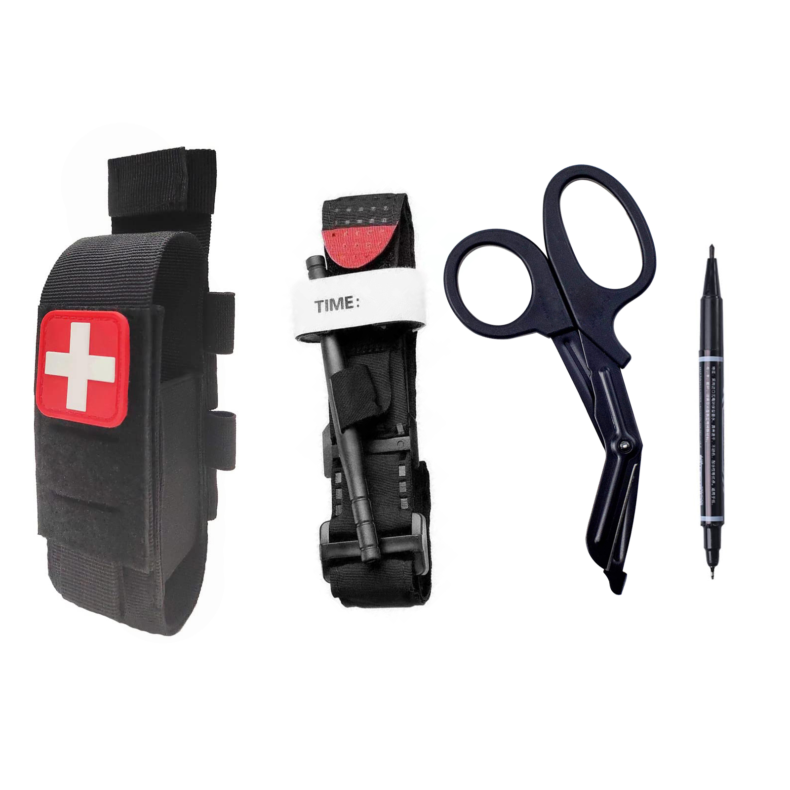 Items include: 1 small bag+tourniquet+wound scissors+pen