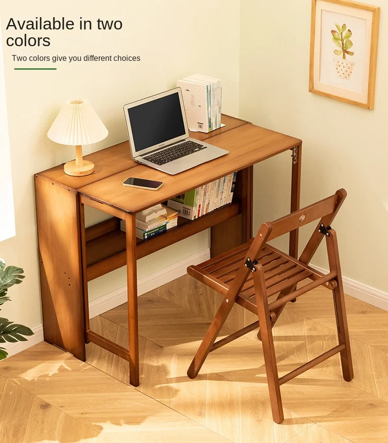 MOMO Folding Desk Computer Table Office Desk Student Home Small Desktop Solid Wood Bedroom Bedside Writing Workstation