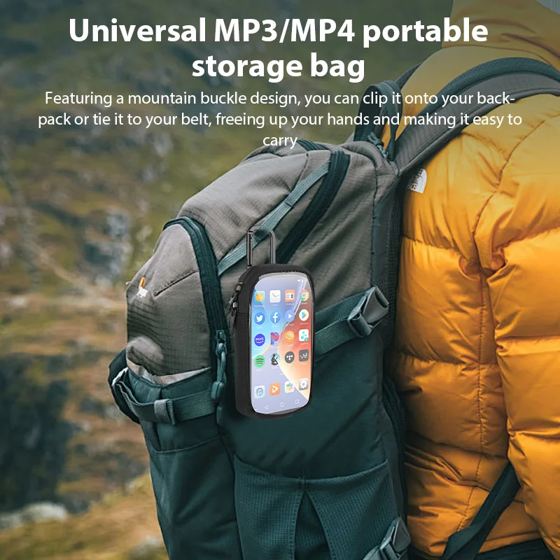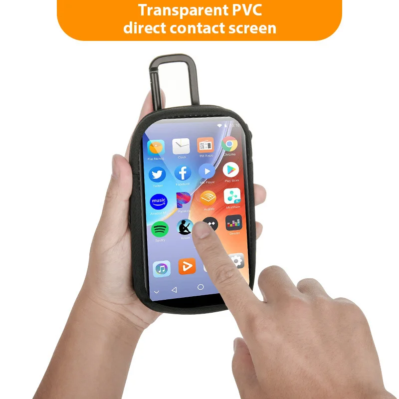 MP3/MP4 Universal TPU Portable Storage Bag Travelling Outdoor with Hanging Buckle Music Player Protective Case with Clear Window