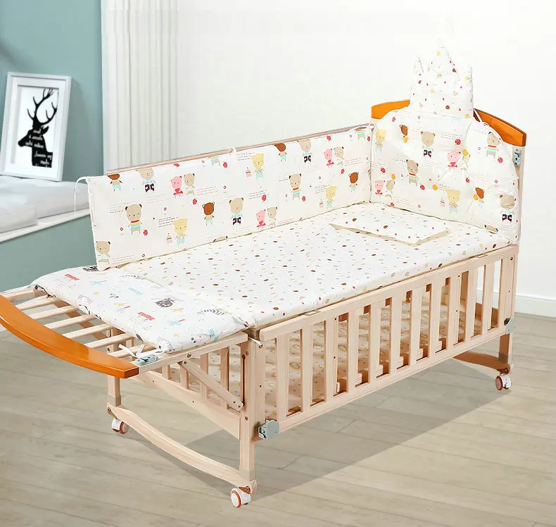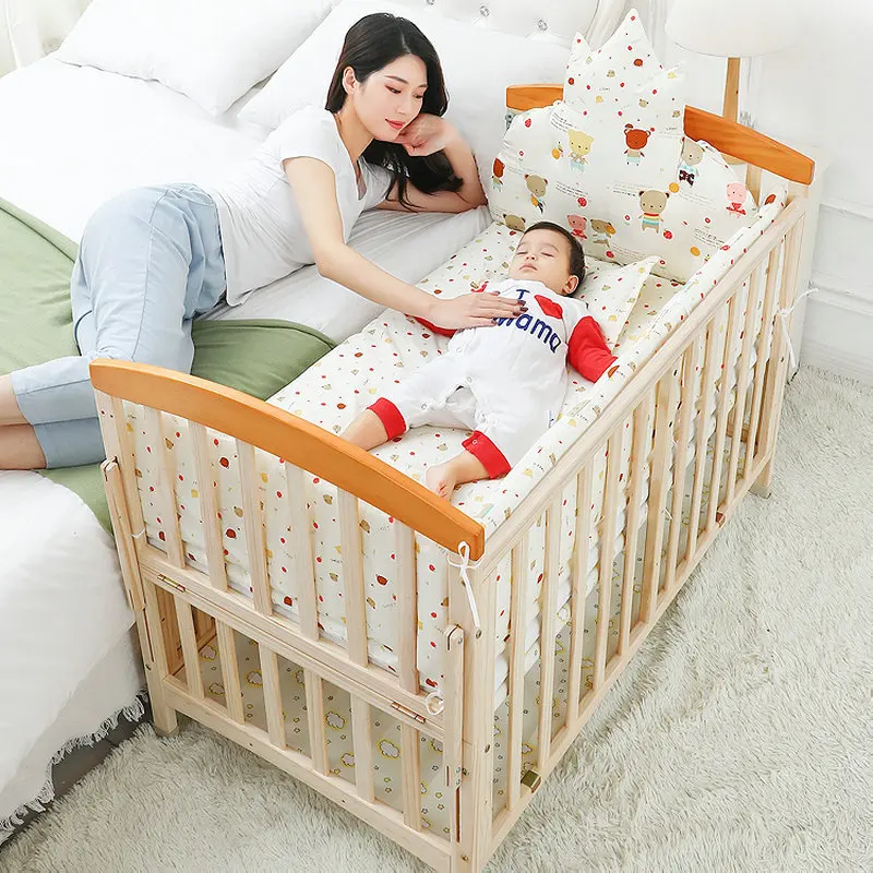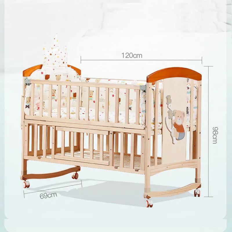 Multifunctional Large Size Newborn BB Cot For 0-5 Ages Kids, 120*69*98cm, Solid Wood Crib Cradle Splicing Adult Bed
