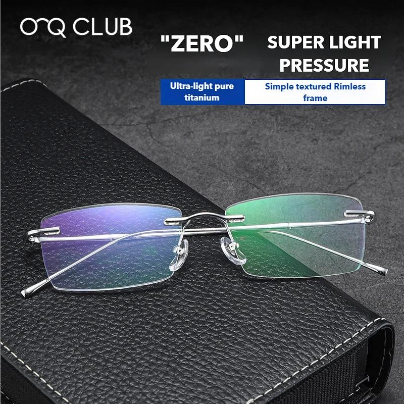 O-Q CLUB Ultra-light Titanium Reading Eyeglass Frames Men Fashion Simple Rimless Myopia Glasses Customized Prescription Glasses