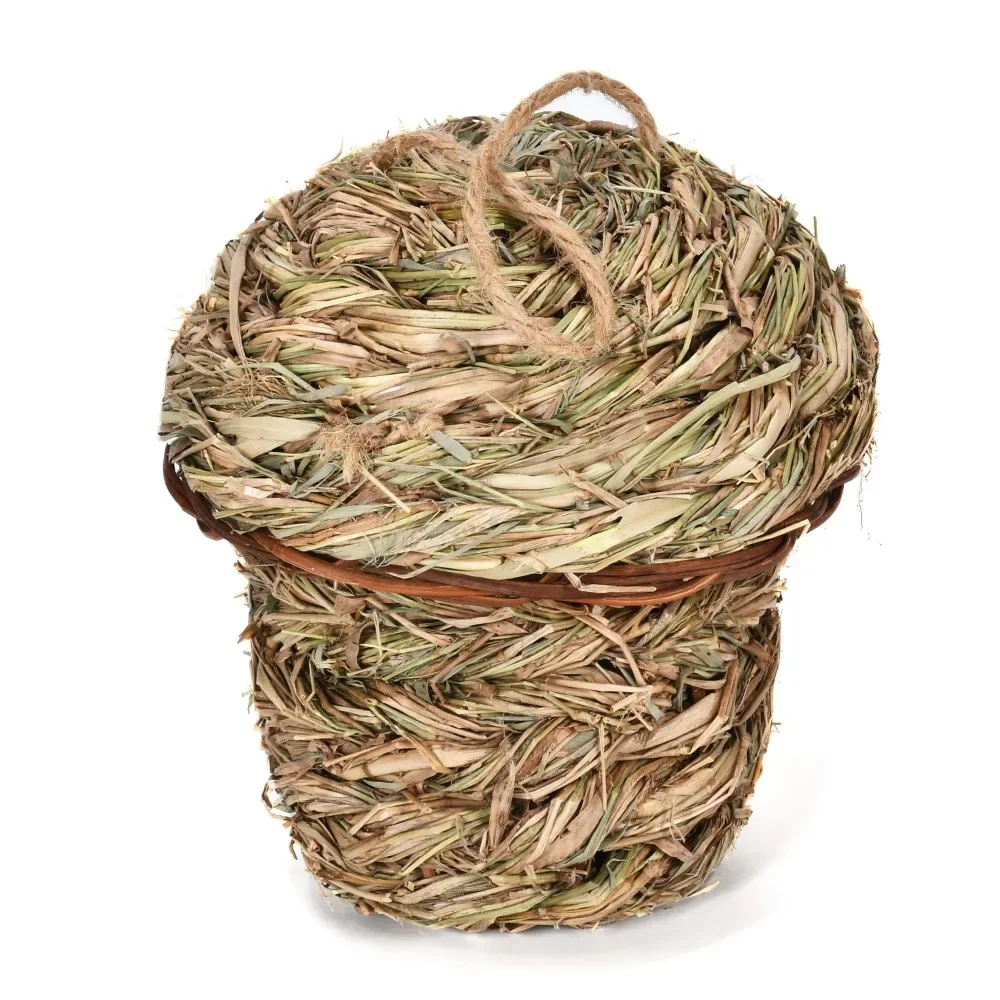 Pure natural materials: The hanging birdhouse is made of natural dry hibiscus grass, which is environmentally friendly and biodegradable, strong and durable, and not easily deformed.