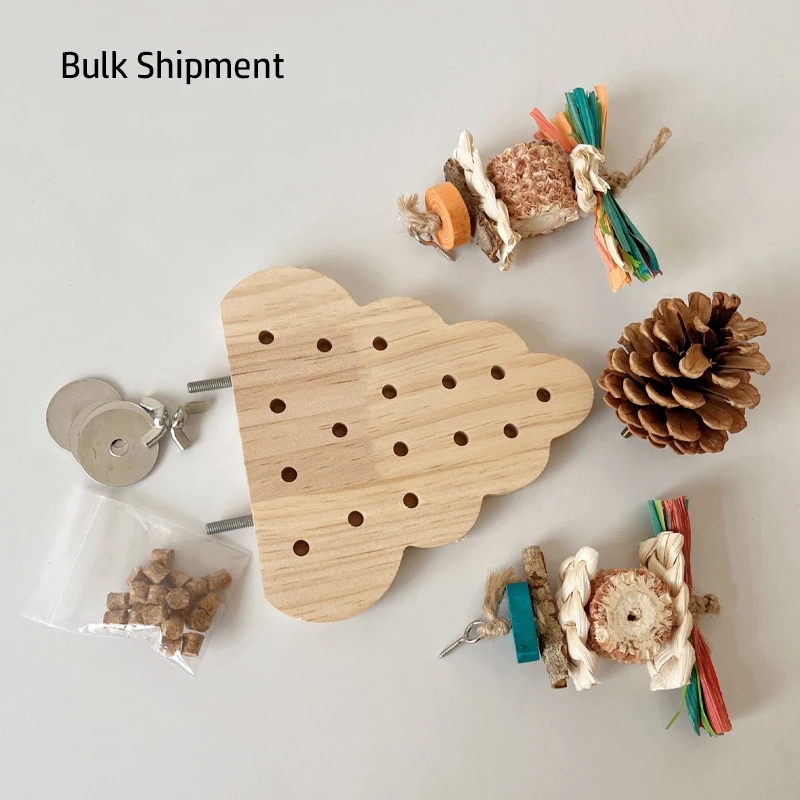 Parrot Chew Toys Plug Pulling Station Beak Grinding Wooden Board for Cockatiel Lovebird Budgie Pet Bird Chewing Biting Accessories