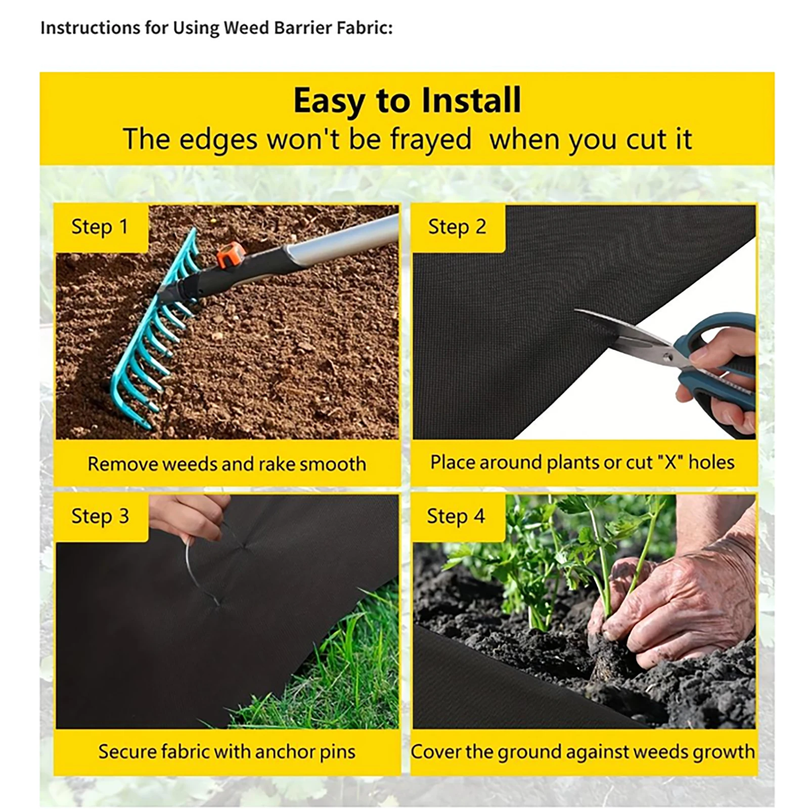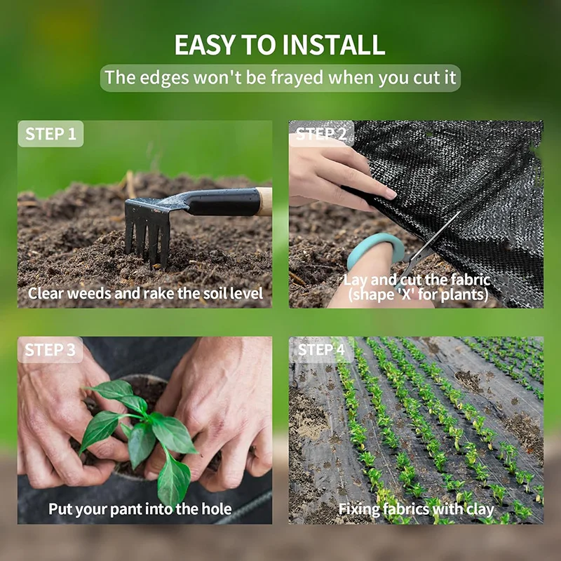 Use landscape staples, soil nails, stones, or bricks to secure the fabric to the ground to prevent it from being blown away or shifted. The spacing between staples should typically be 30-50 cm to ensure the fabric stays in place.