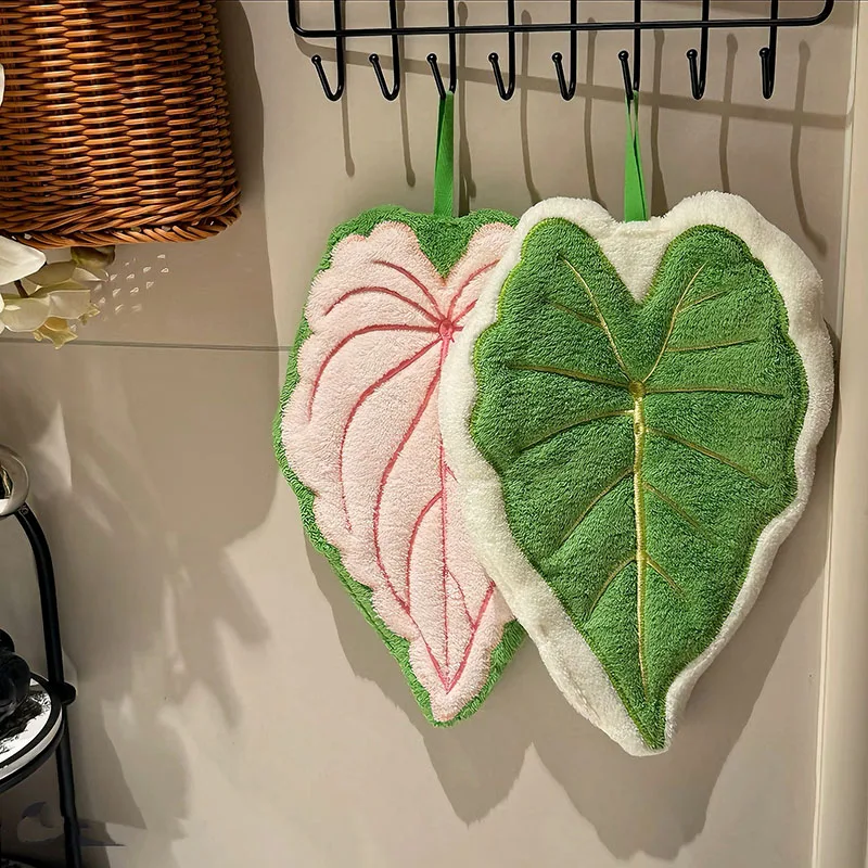 3. Design: The leaf shaped hand towel has a unique design and can be used as a home decoration.