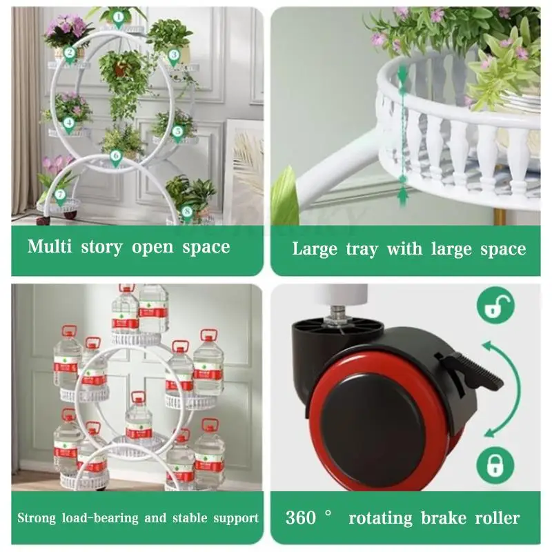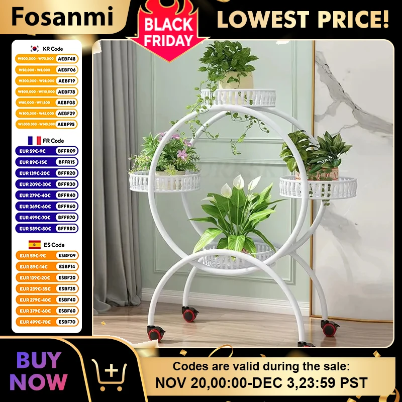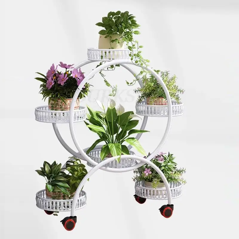 Plant Stand Flower Shelf Planter Rack Storage Indoor Garden Balcony Floor-standing Rack Flower Shop Rack With Pulley