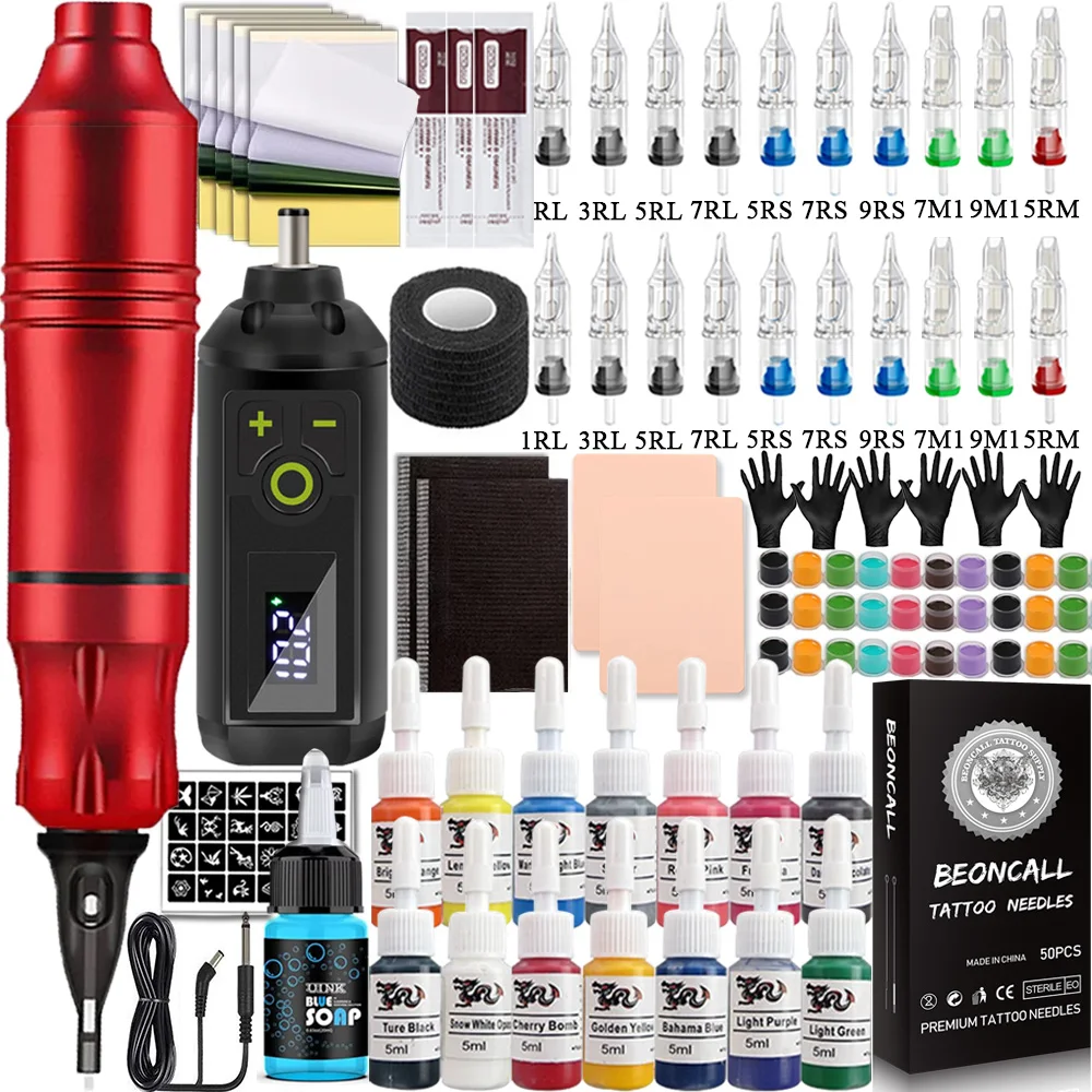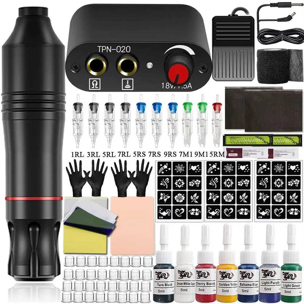 TYPE2: 7 Inks 10 Needles Wireless Tattoo Pen Kit