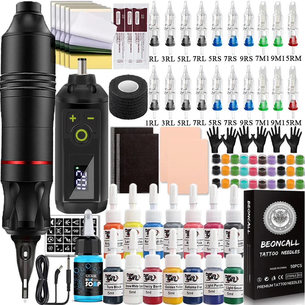 TYPE 1: 14 Inks 20 Needles Wireless Tattoo Pen Kit