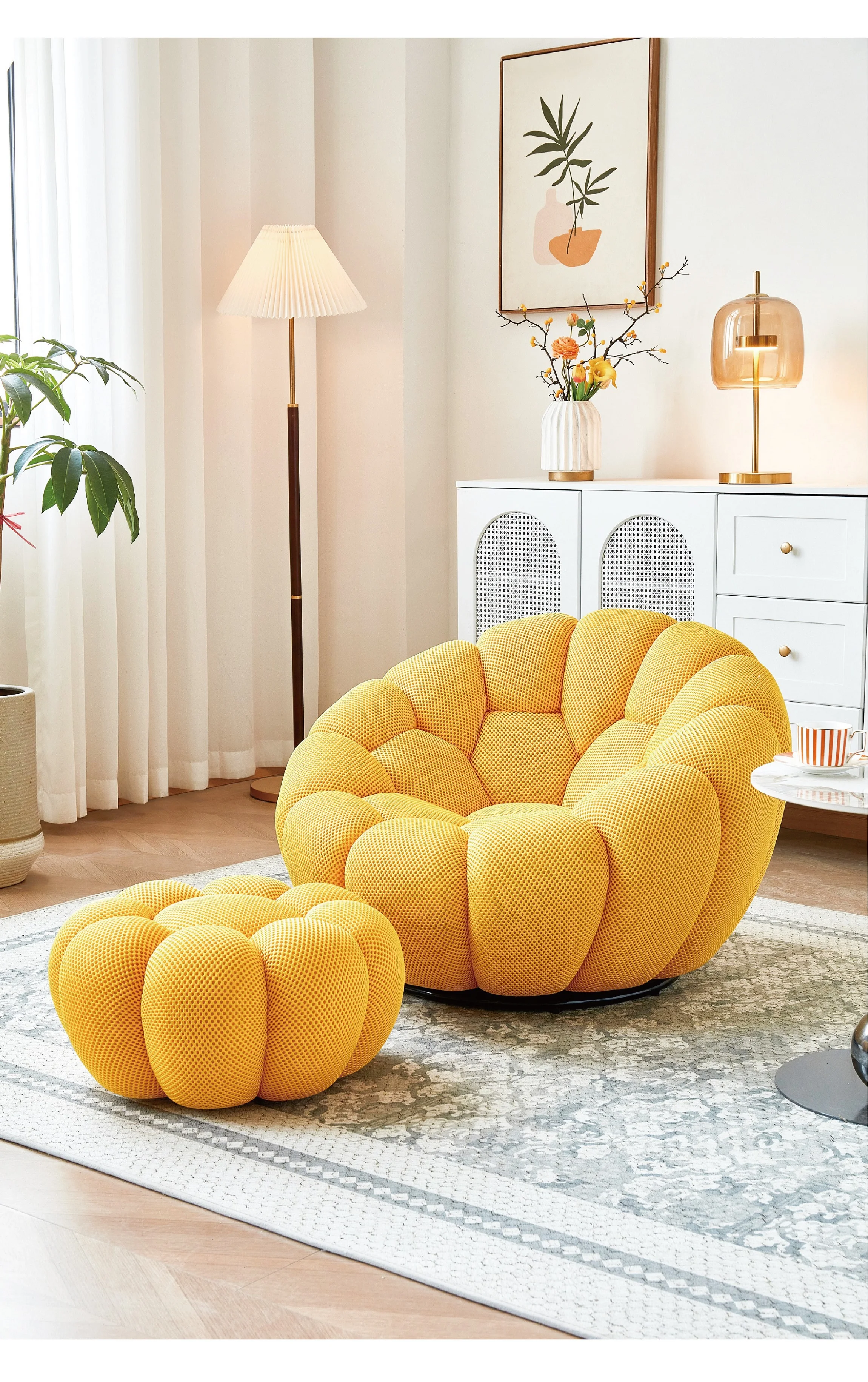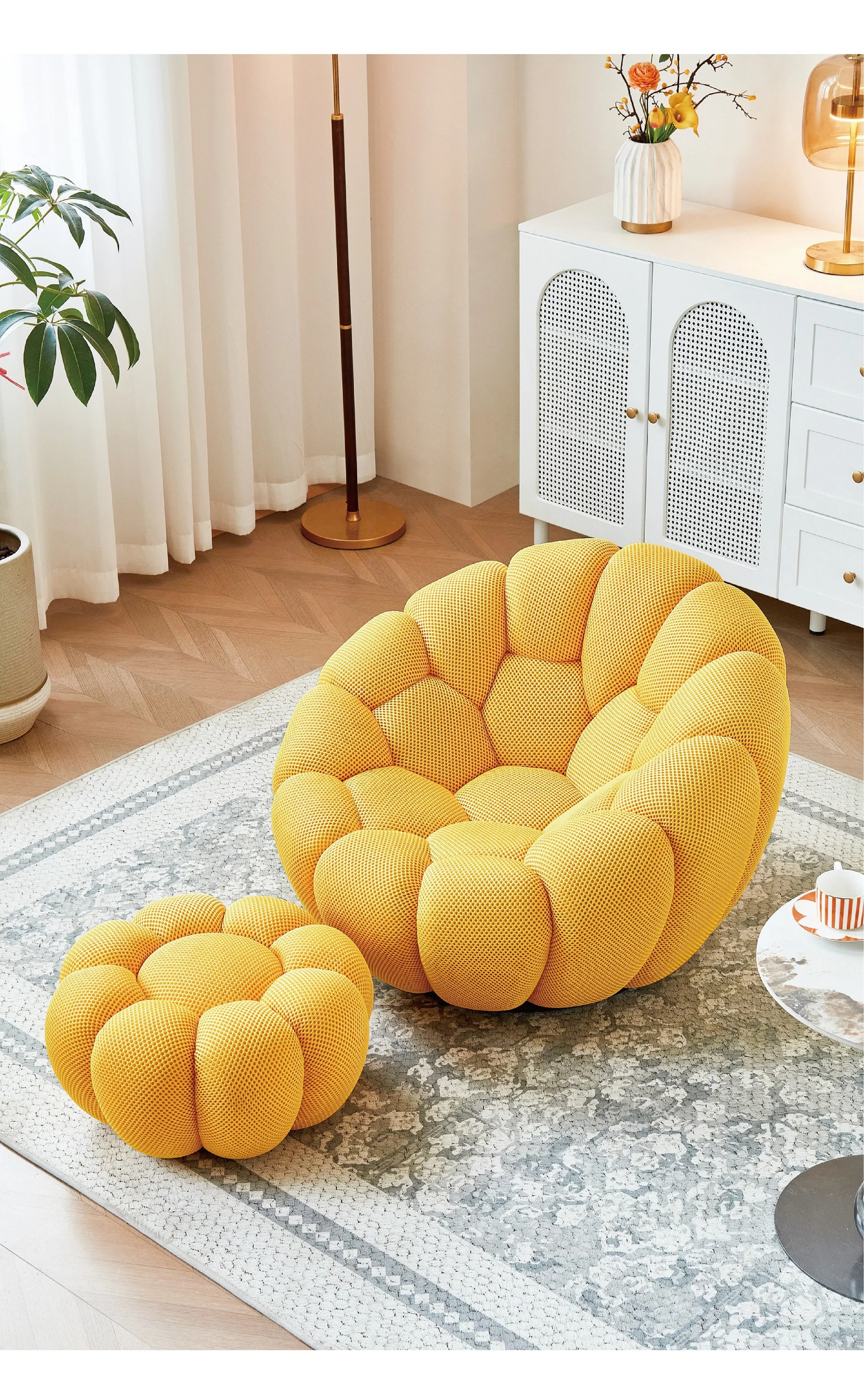 Unique pumpkin silhouette transforms your bedroom or living area into a sophisticated designer sanctuary for daily relaxation.[PREMIUM BOUCLE FABRIC]