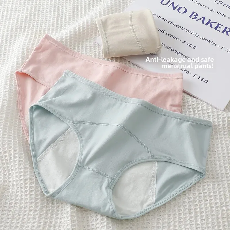 Pure Cotton Breathable Women’s Period Underwear Mid-Waist Cotton Panties Triangle Design Leak-Proof Comfortable Ladies Briefs