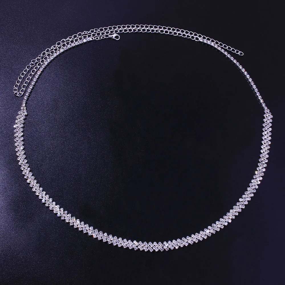 Rhombus Chunky Rhinestone Waist Chain Belt Body Jewelry for Women Sexy Shiny Crystal Belly Chain Waist Jewelry Bikini Gift