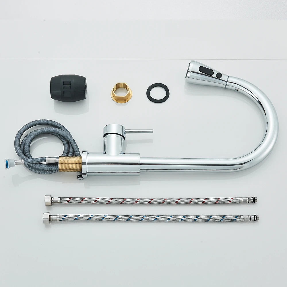 Brushed Nickel Mixer Faucet Single Hole Pull Out Spout Kitchen Sink Mixer Tap with Stream Sprayer Head Chrome/Black Kitchen Tap