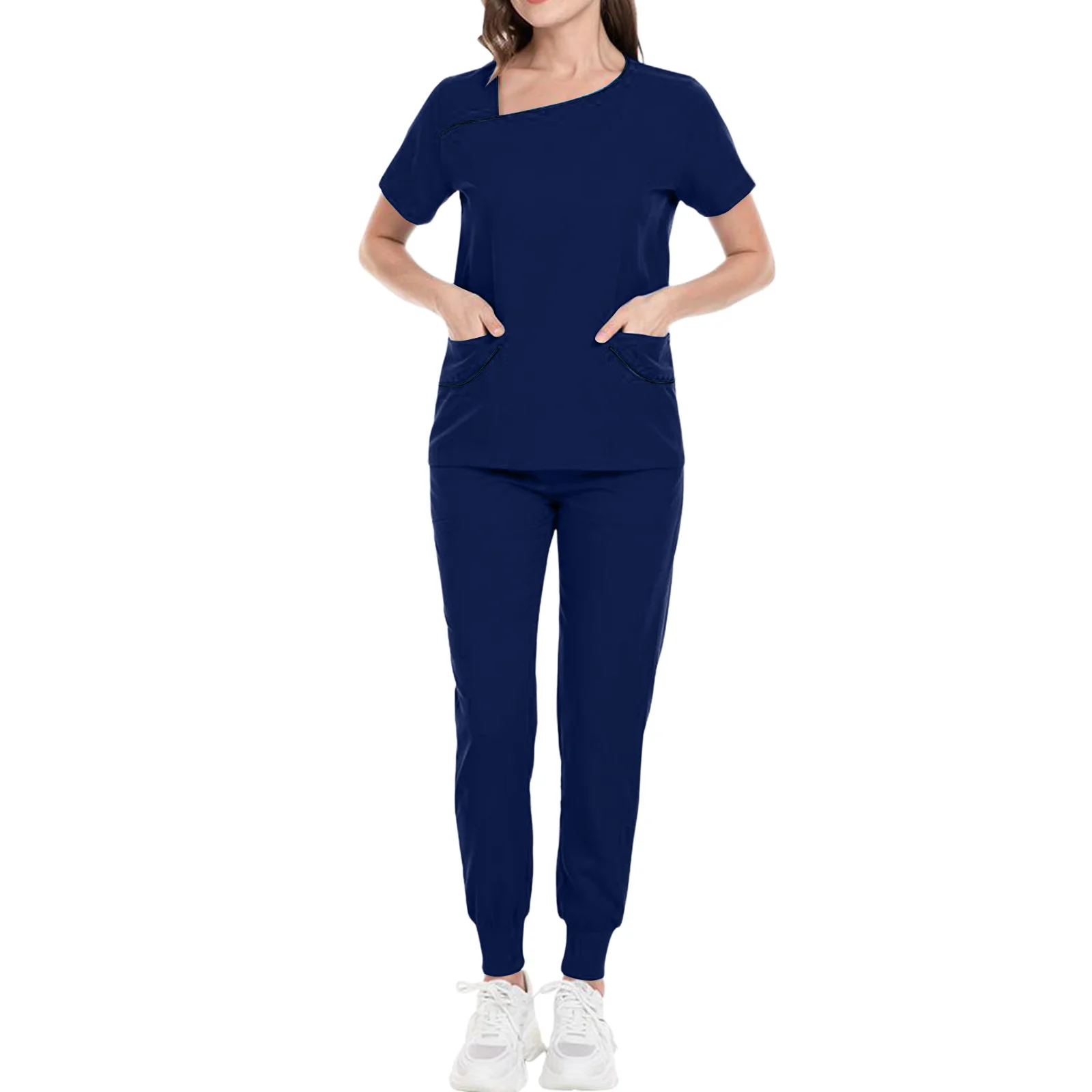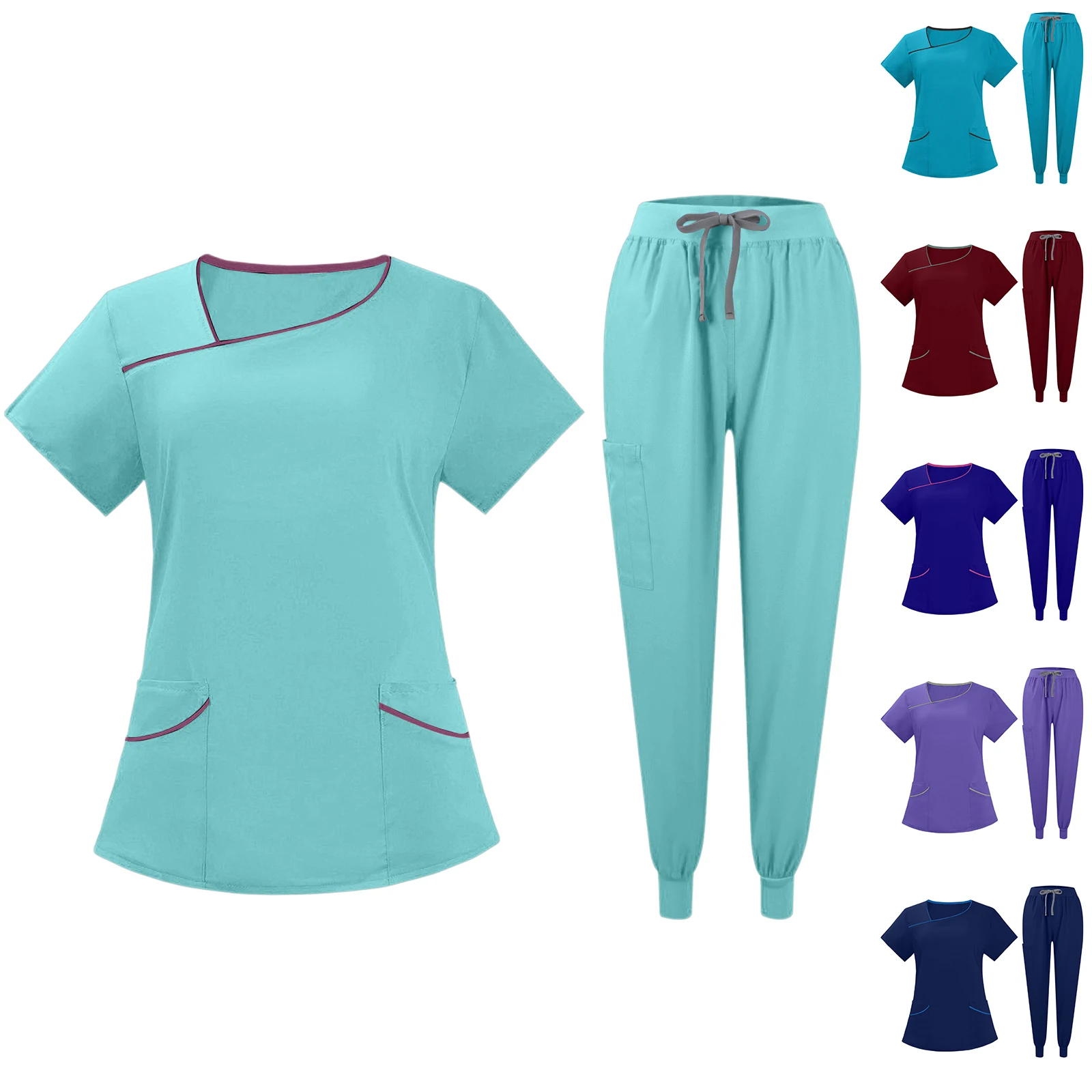 Ladies’ Comfortable And Casual Solid Color Short Sleeved Pants Protective Suit Set