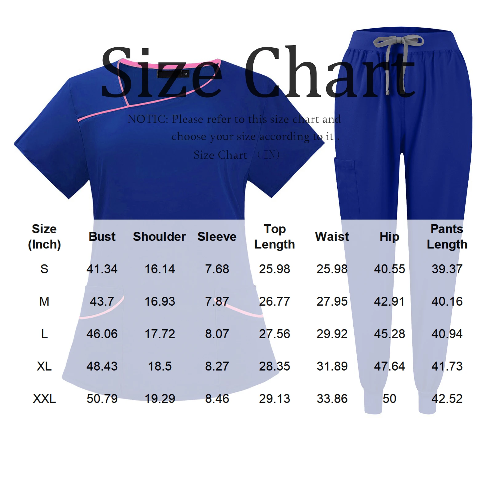 | Size | Bust | Shoulder | Sleeve | Top Length | Waist | Hip | Pants Length |