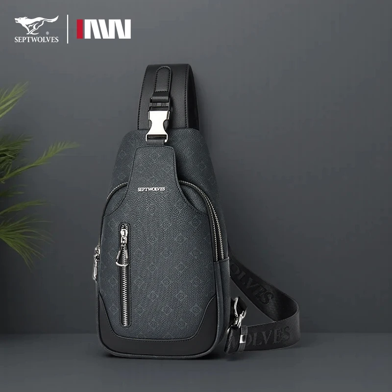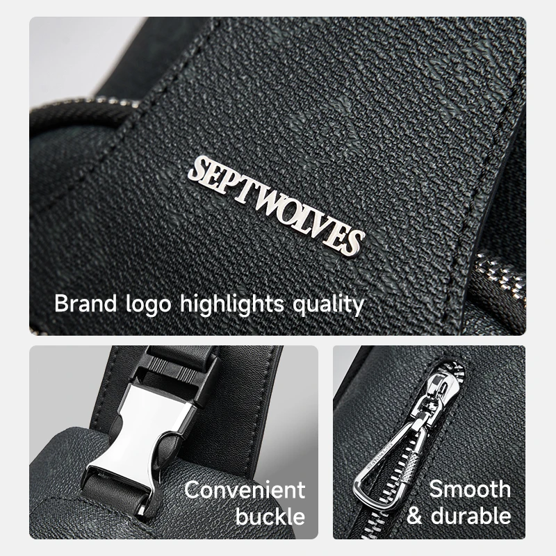 Septwolves Business Thin Printed Leather Crossbody Sling Bag Man Fashion Casual Travel Monogram Print Fabric iPad Shoulder Bag