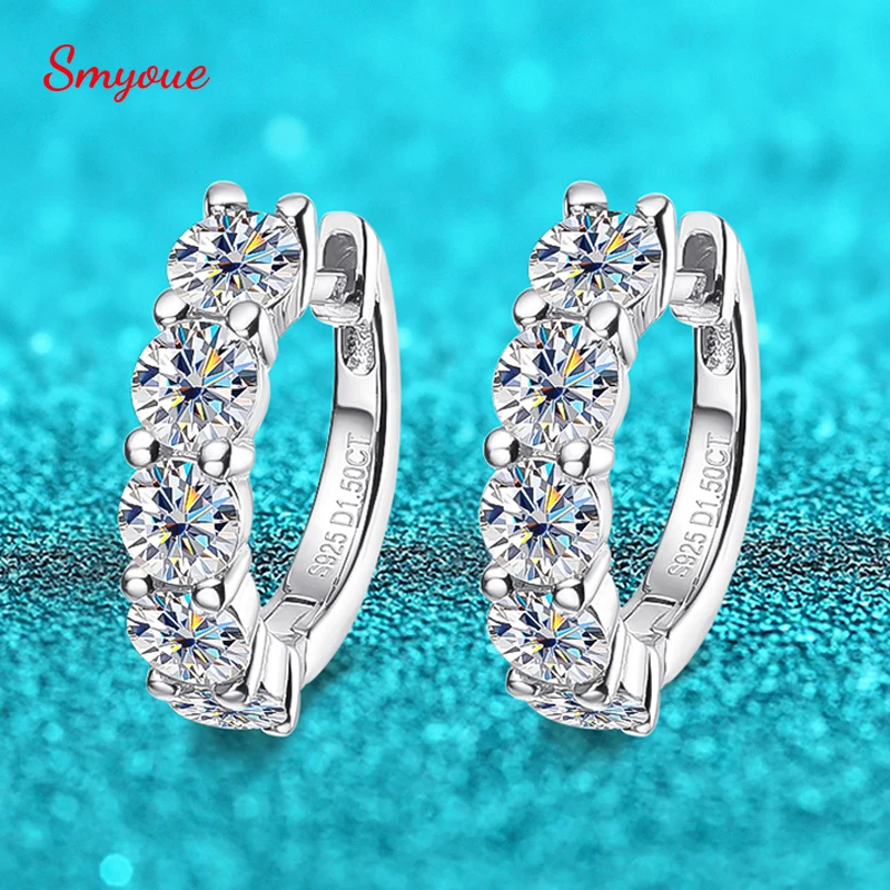 Smyoue 18k 2/3ct Moissanite Hoop Earring for Women 3.5/4mm Stones D Color Sparkling Created Diamond Earring 100% S925 Sterling Silver