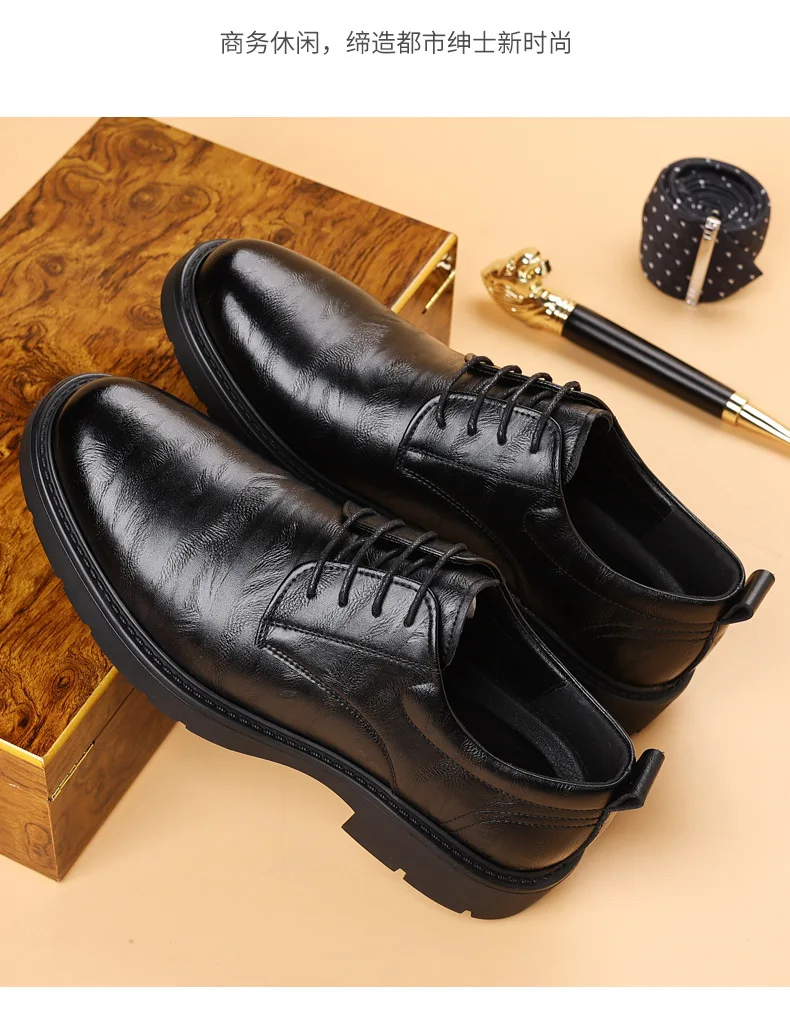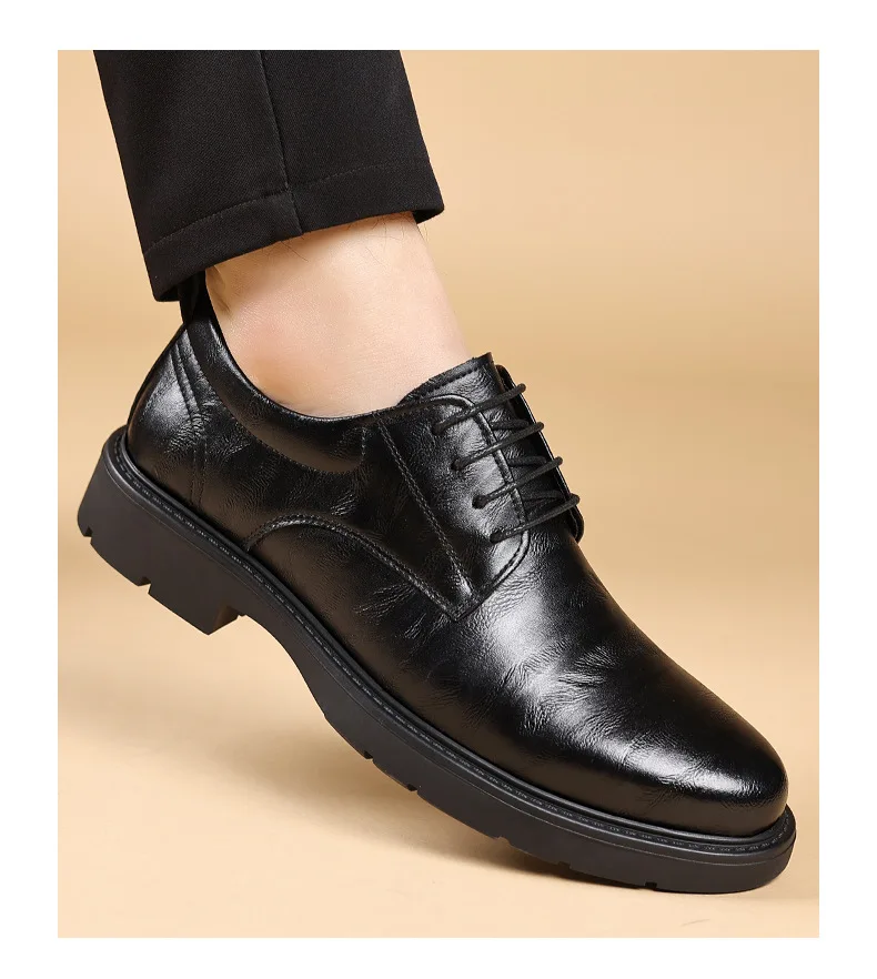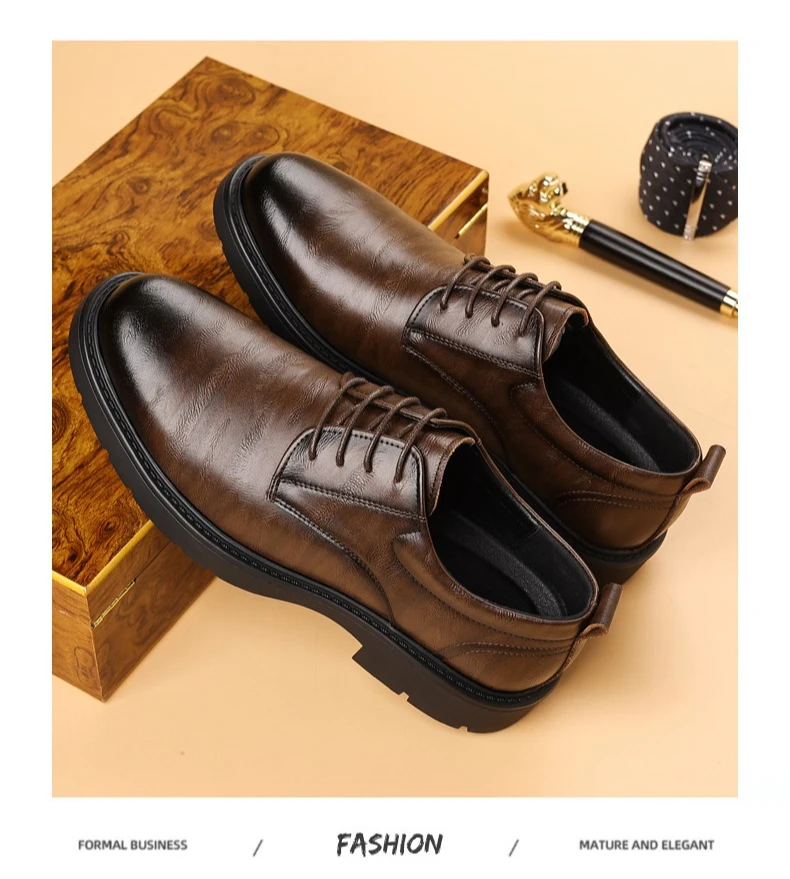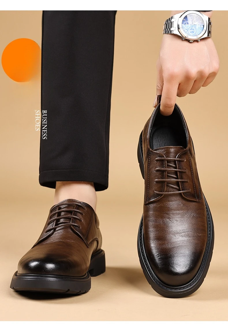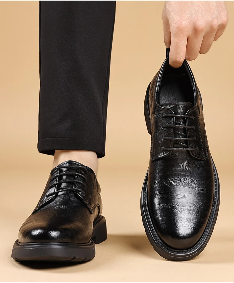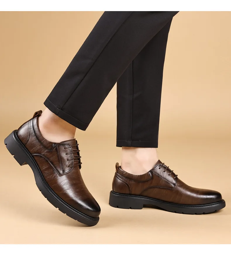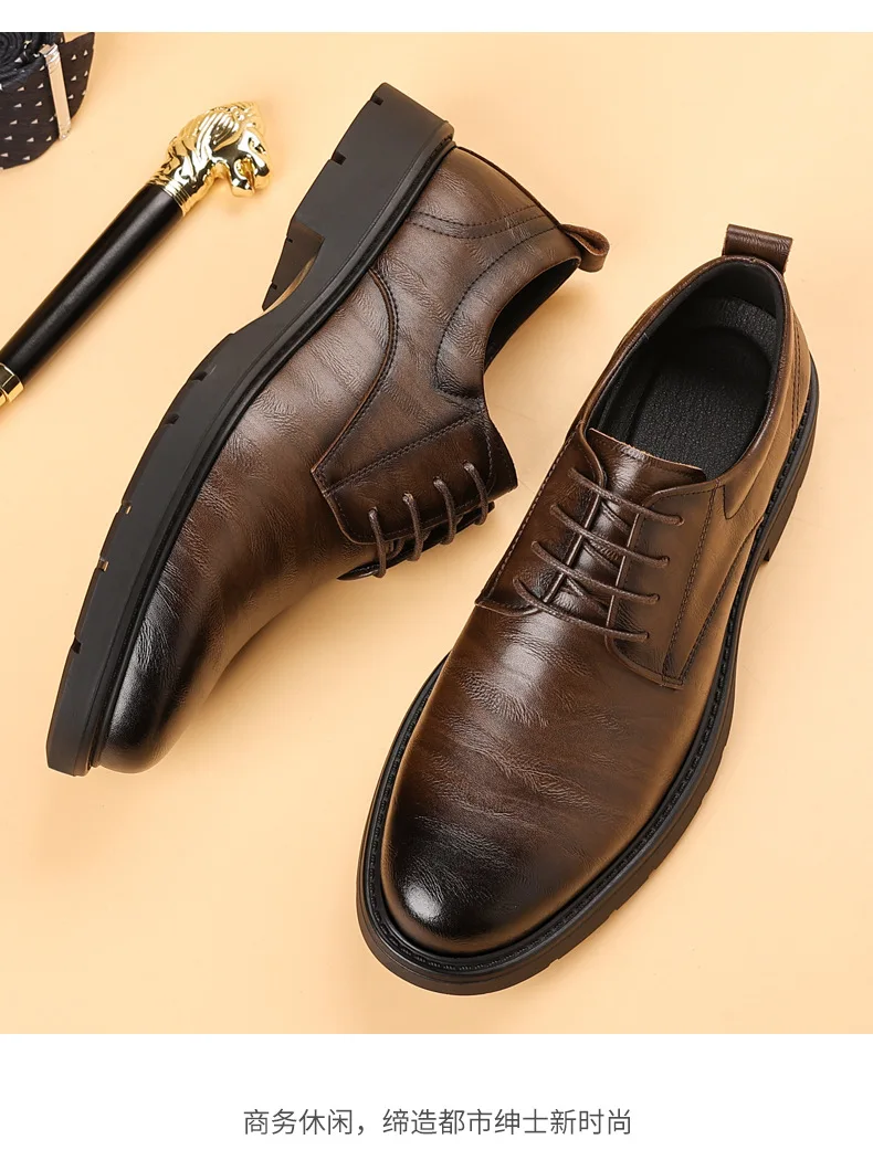 Solid Color Fashion Autumn Brown Wedding Groom’s Shoes Business Retro Derby Shoes Male New Designercow Leather Dress Shoes Man