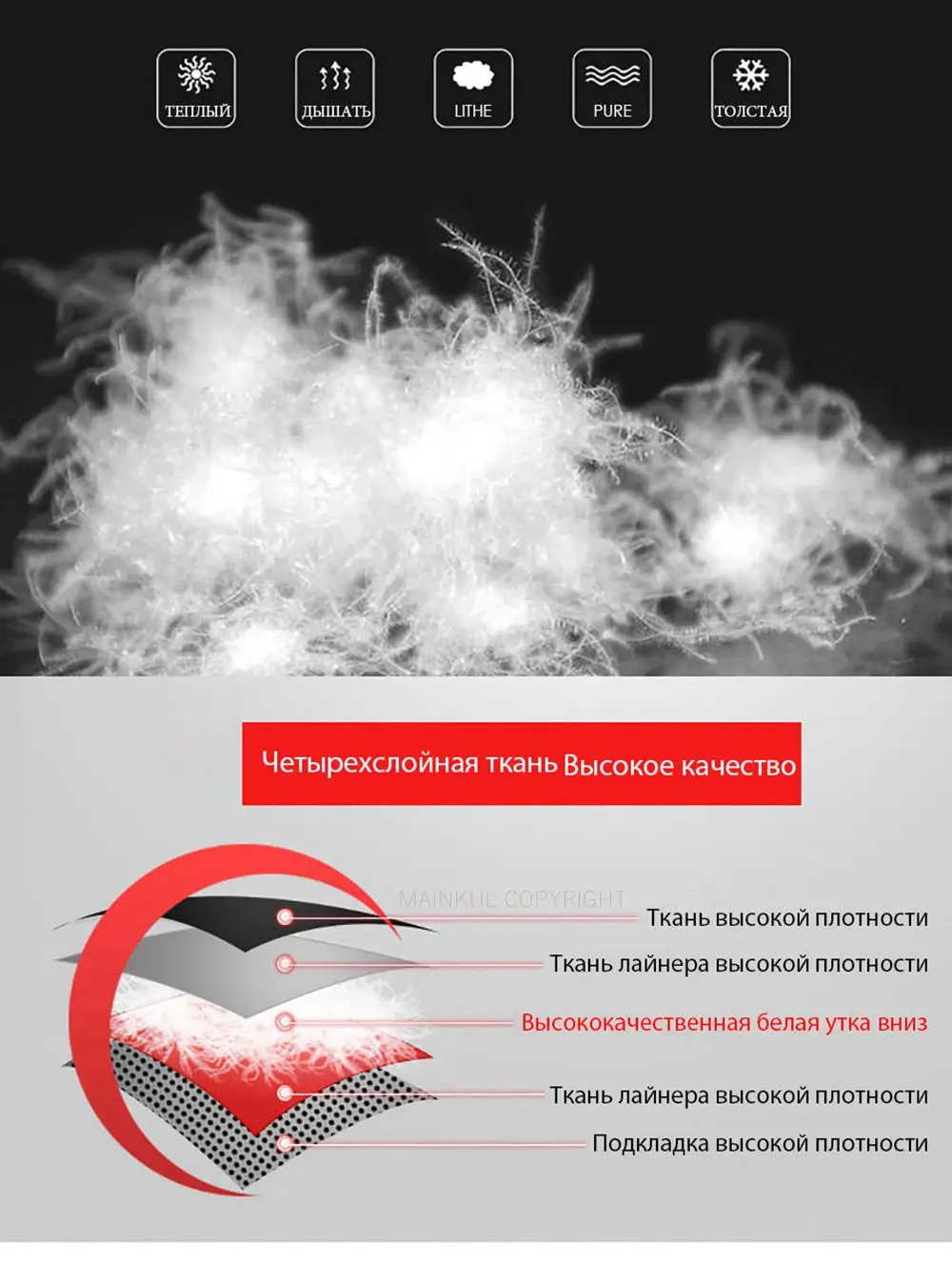 - Filling material: White duck down