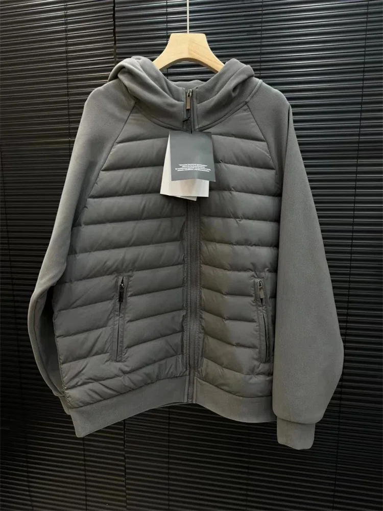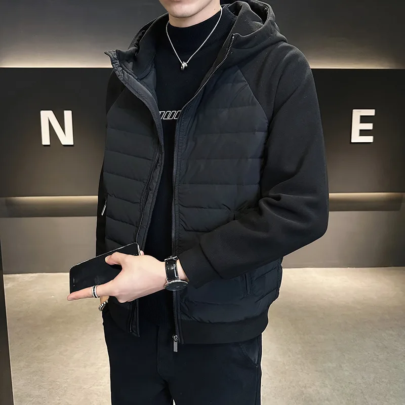 - style: Splicing hooded down jacket