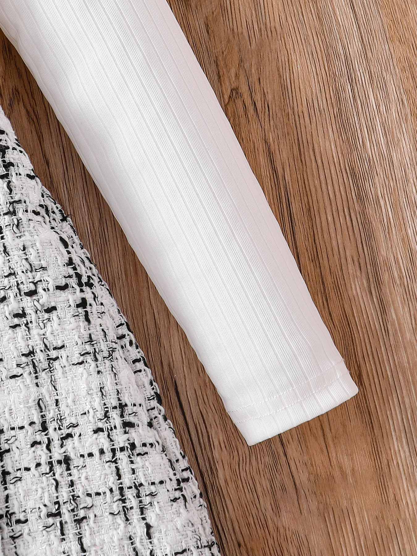 Be the first to review “Spring and Autumn children’s 2-piece fashion casual clothing white high-neck long-sleeved flying sleeve top + plaid A-line skirt”