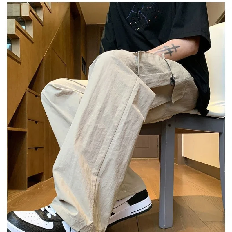 Be the first to review “Spring Autumn New Fashion Elastic Waist Solid Color Loose Pocket Drawstring American Style All-match Quick Drying Cargo Pants” Cancel reply