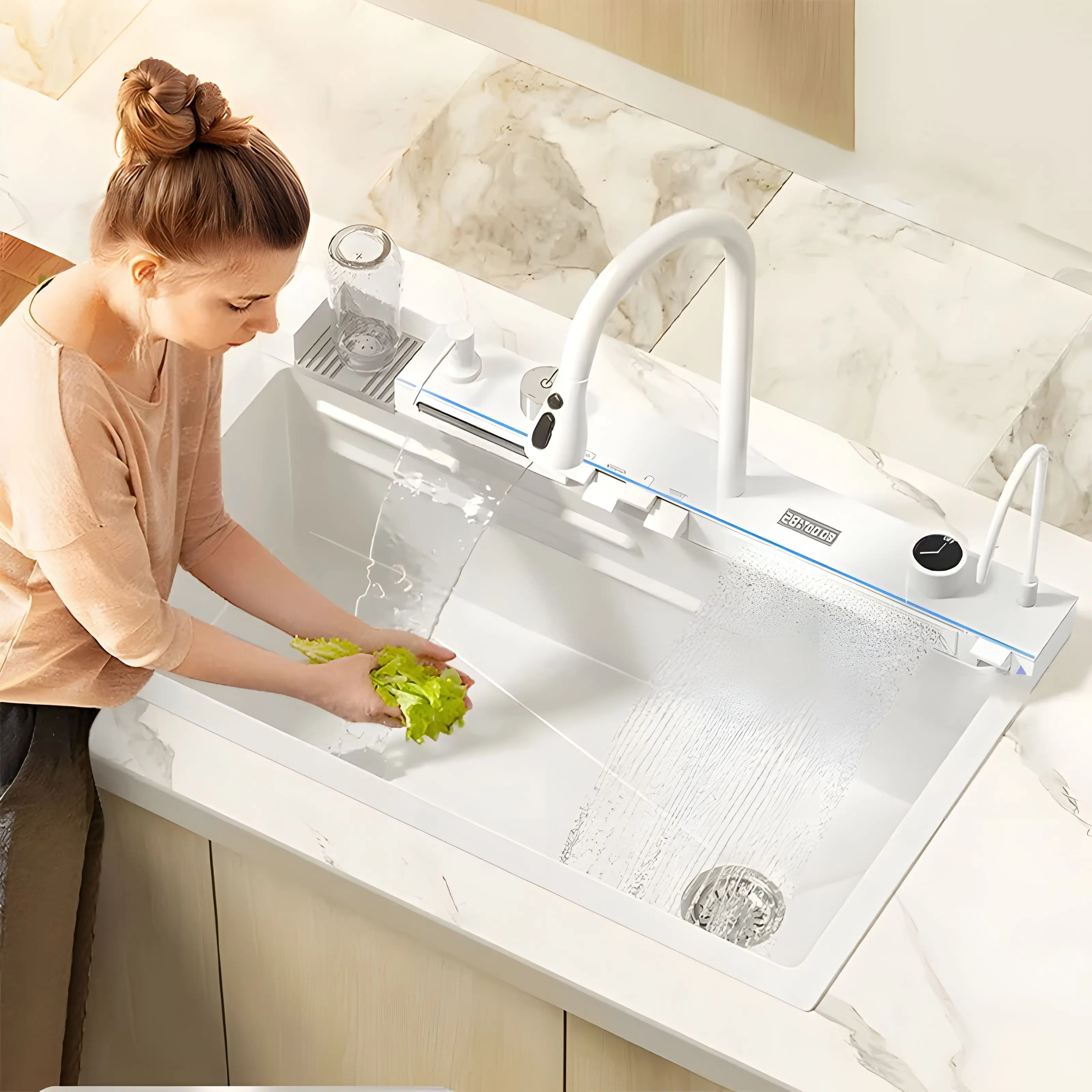 Be the first to review “Stainless Steel Kiten Sink with Faucet 75*45cm Large Single Bowl Digital Display Dish Basin Kiten Sink Waterfall Hot Cold Fauc” Cancel reply