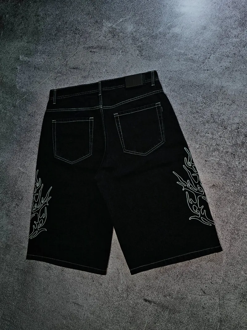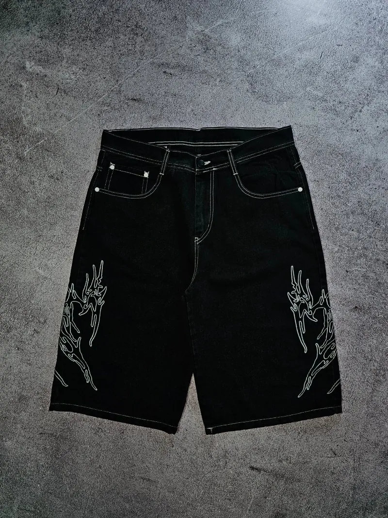 Street Fashion Brand Clothing White Striped Loose Jeans Men New American Harajuku Y2K Casual Straight Black Shorts Women