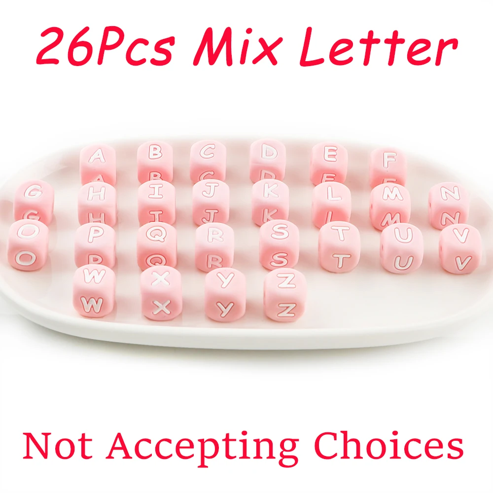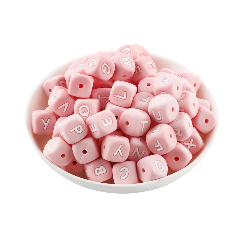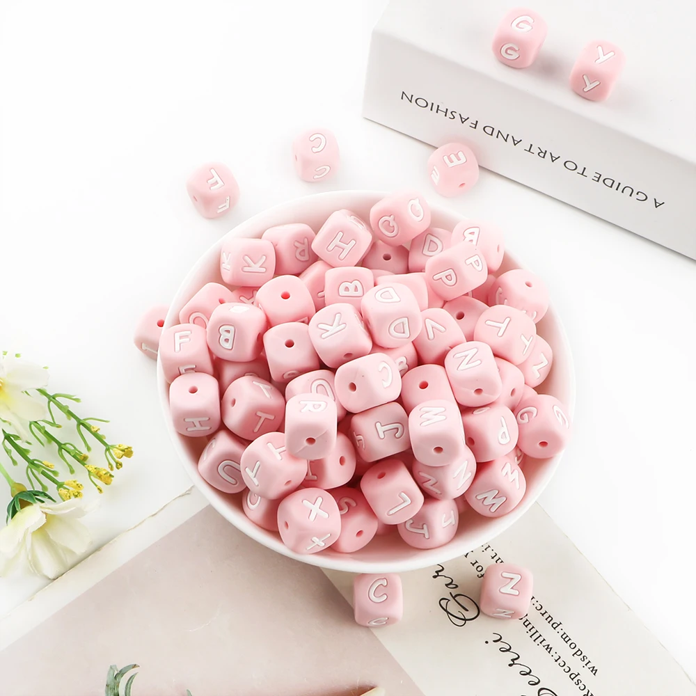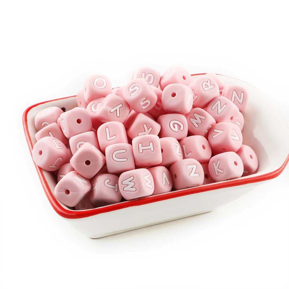 Sunrony 10~100Pcs Silicone Letters Beads 12MM Pink Square Alphabet Bead DIY Bracelet Handmade Accessories For Jewelry Making