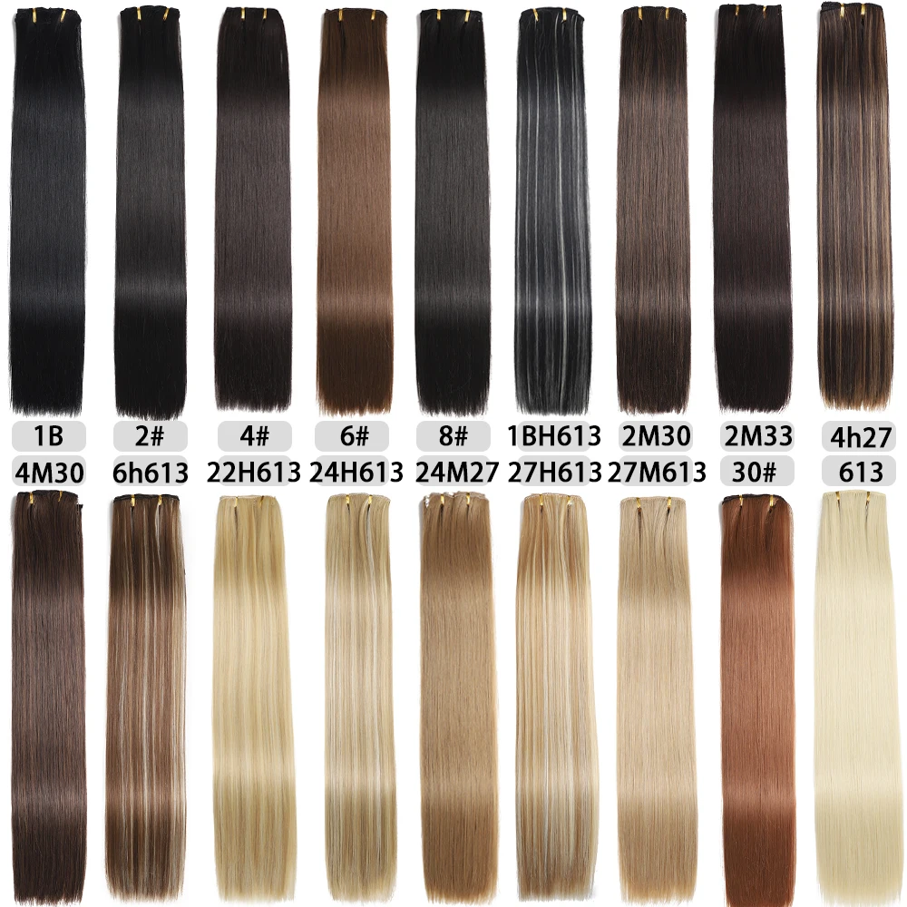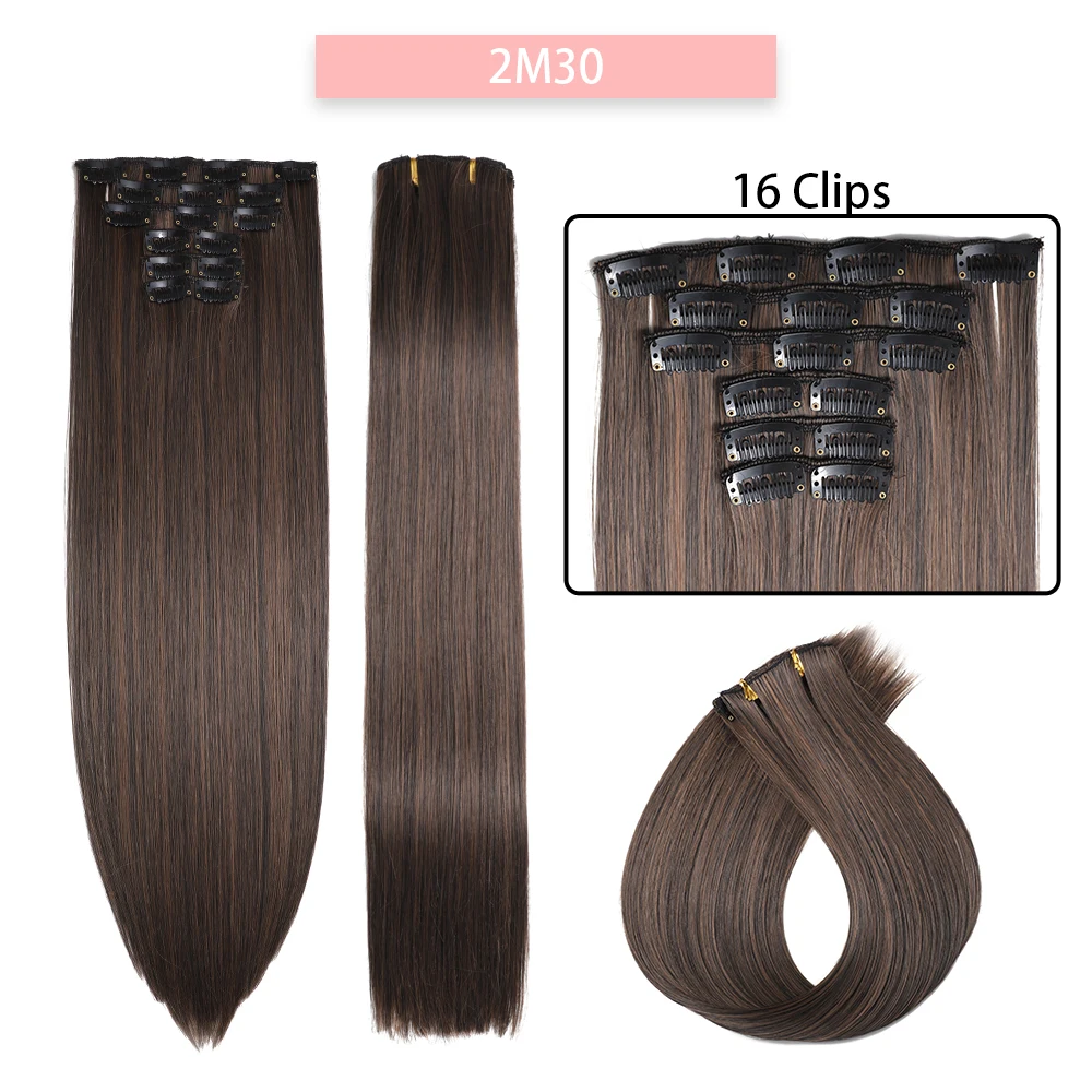 Synthetic Long Straight 16 Clips 6Pcs/Set Hair Extensions 24 Inches Hairstyle Blonde Black Hairpieces Heat Resistant For Women