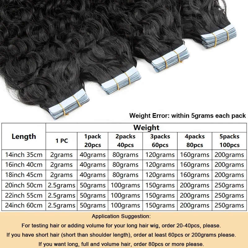 20 inches = 50cm, 2.5g/pc, 20pc=50g, 40pc=100g, 60pc=150g, 80pc=200g;